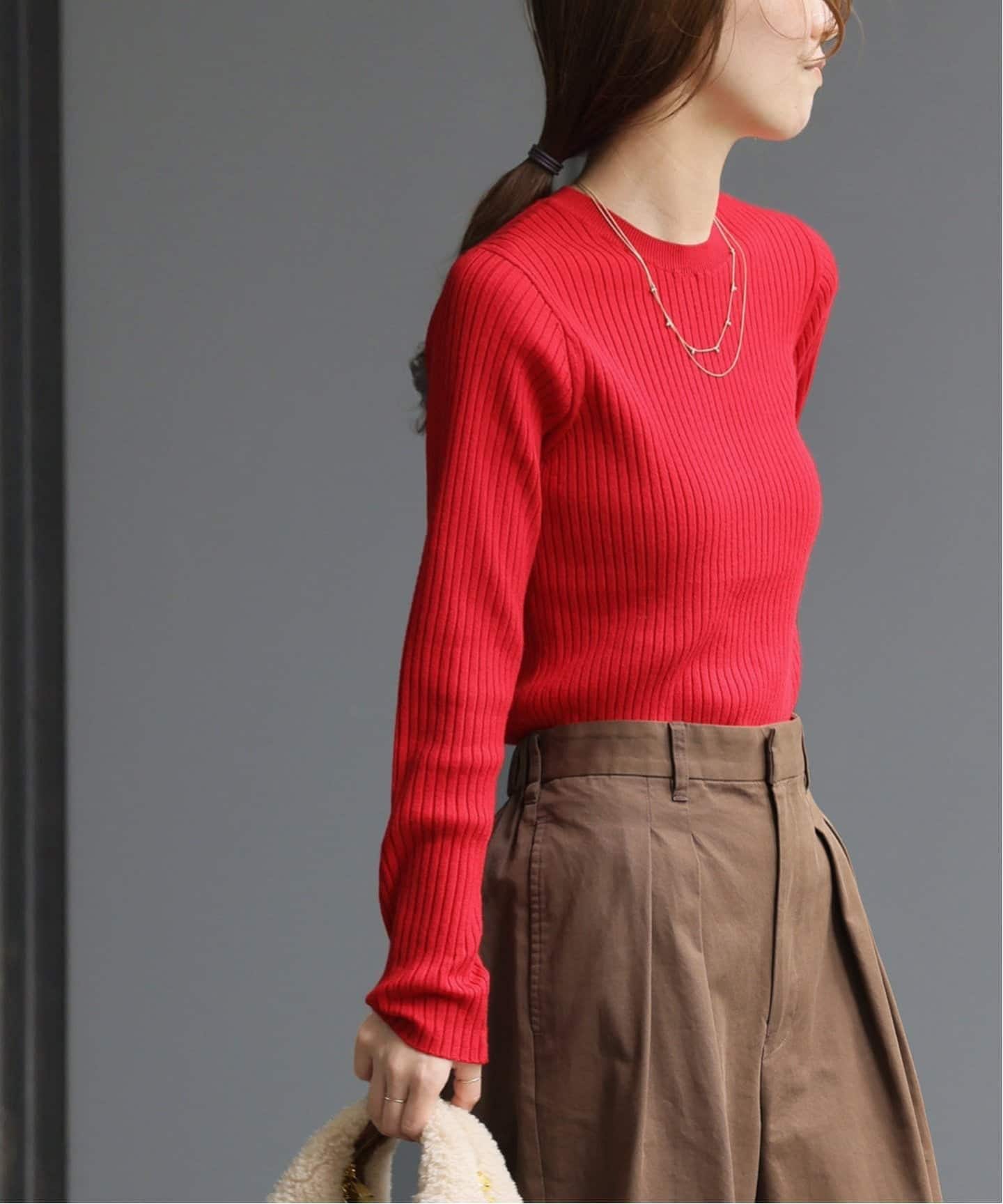 《一部WEB限定追加予約2》ウォッシャブルレーヨンリブクルーネックプルオーバー