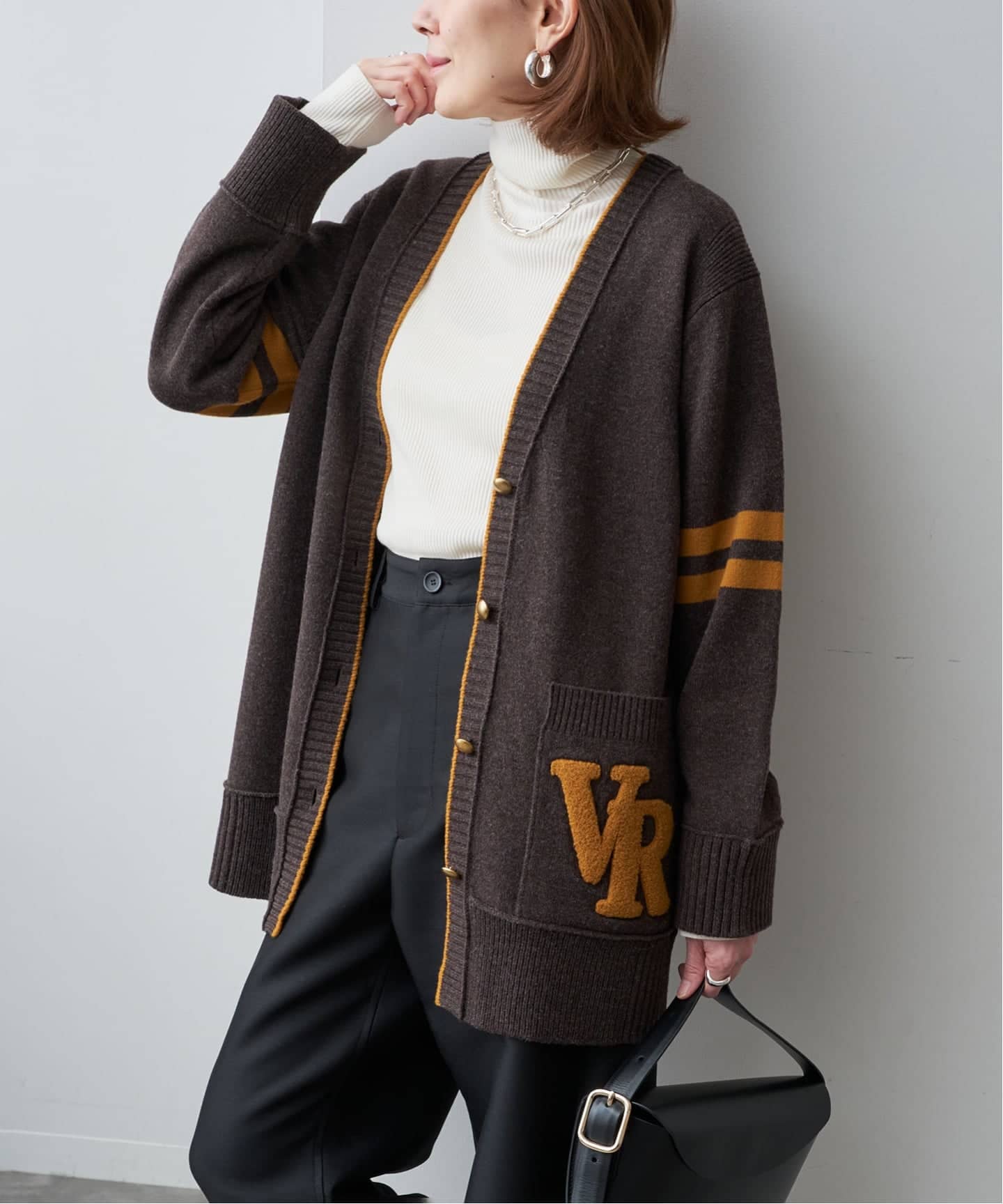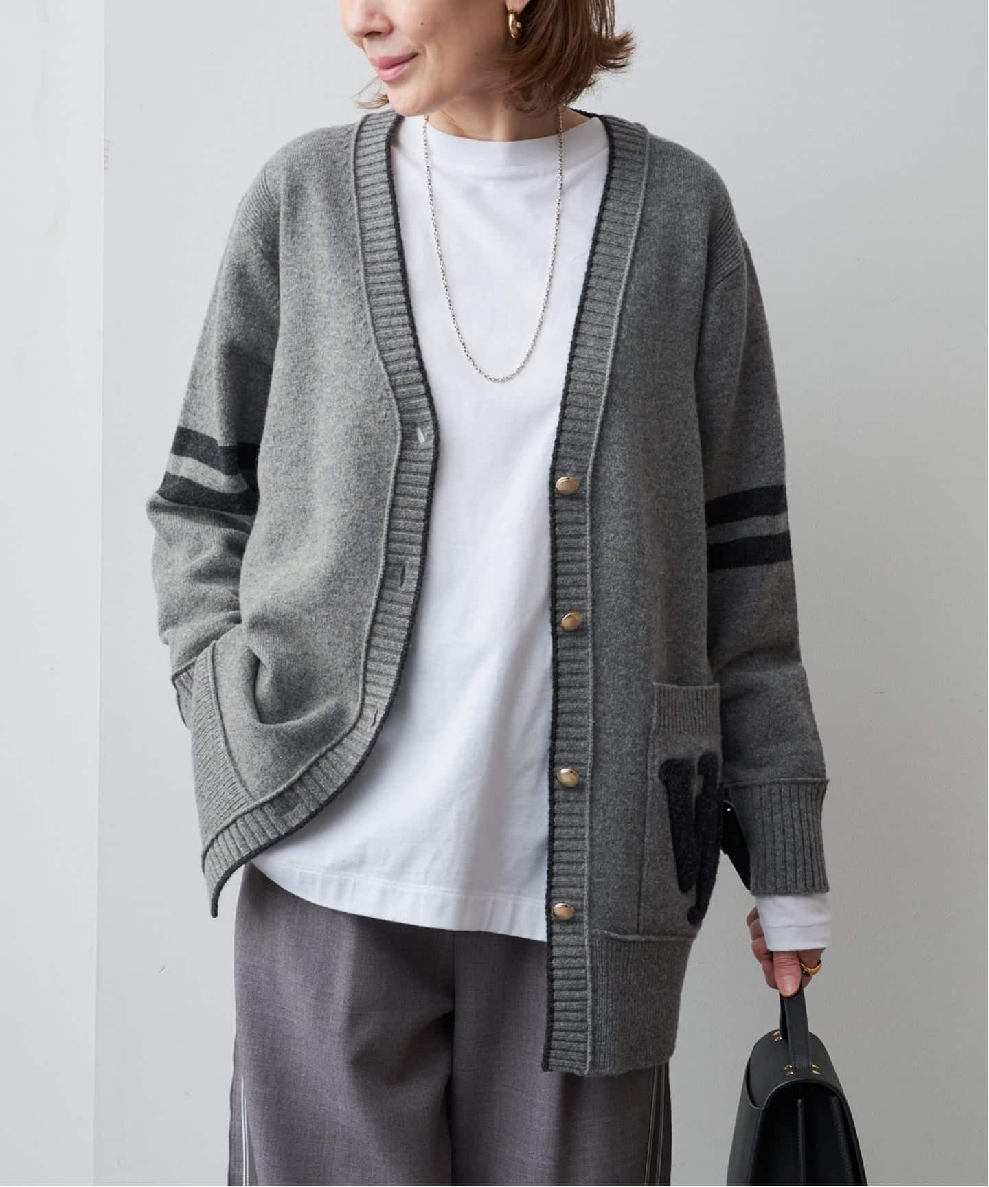 ―ロゴが映える、トラッドムードな大人カーディガン