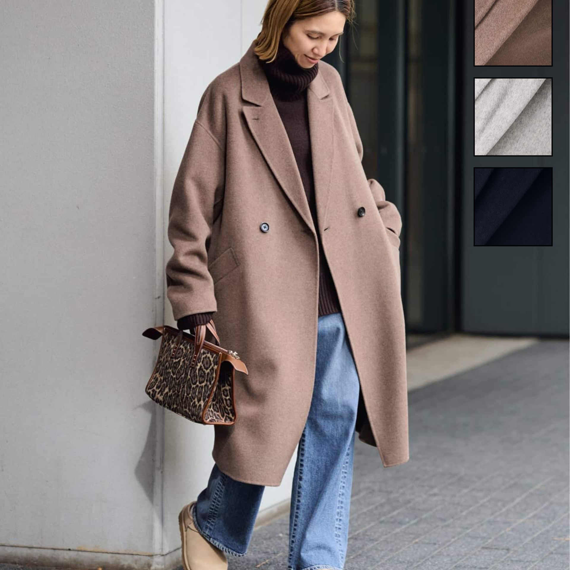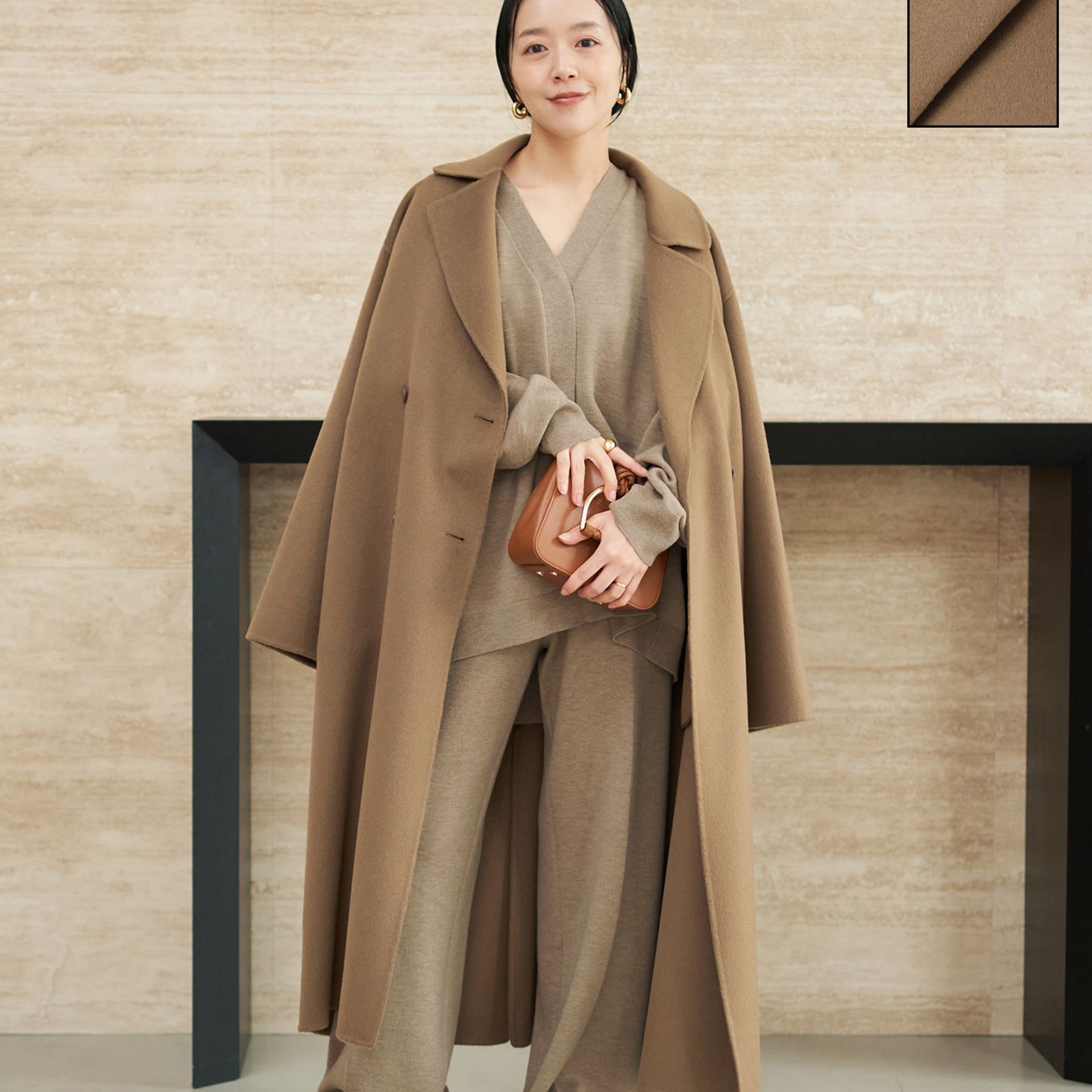 上質なウール素材を活かした、柔らかく包み込むようなシルエットのコートスタイル。