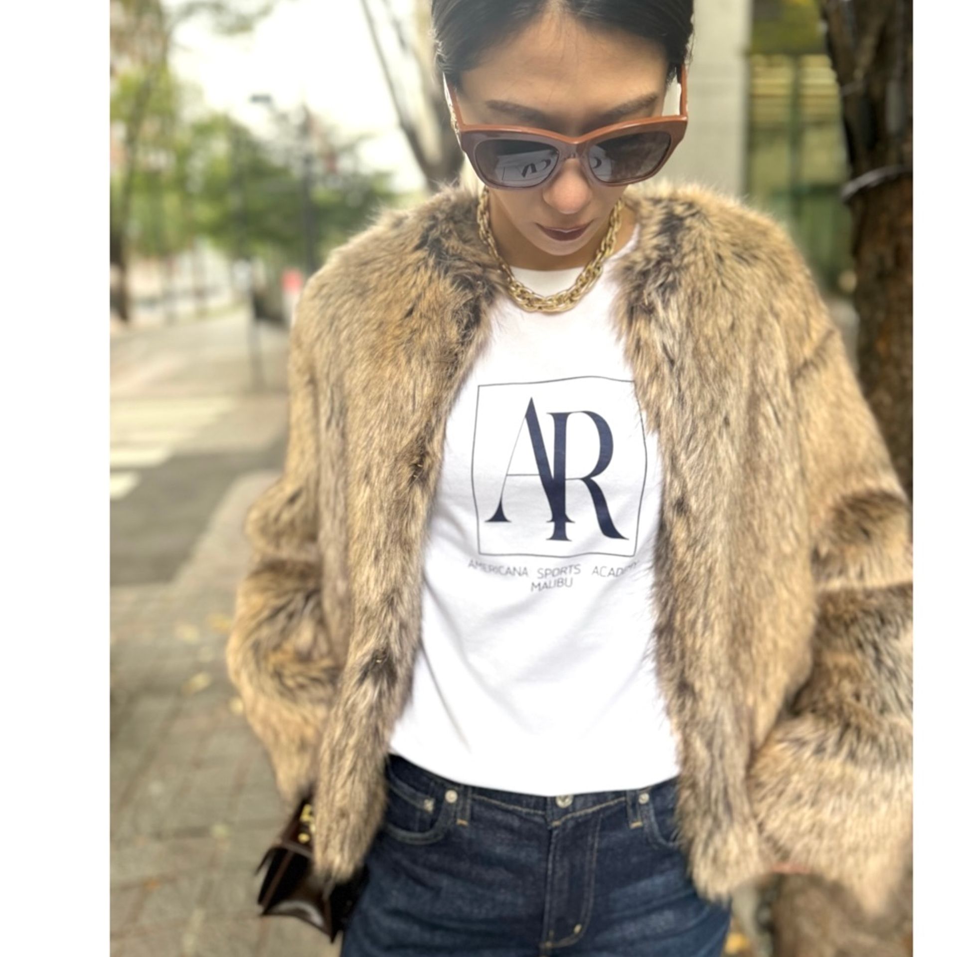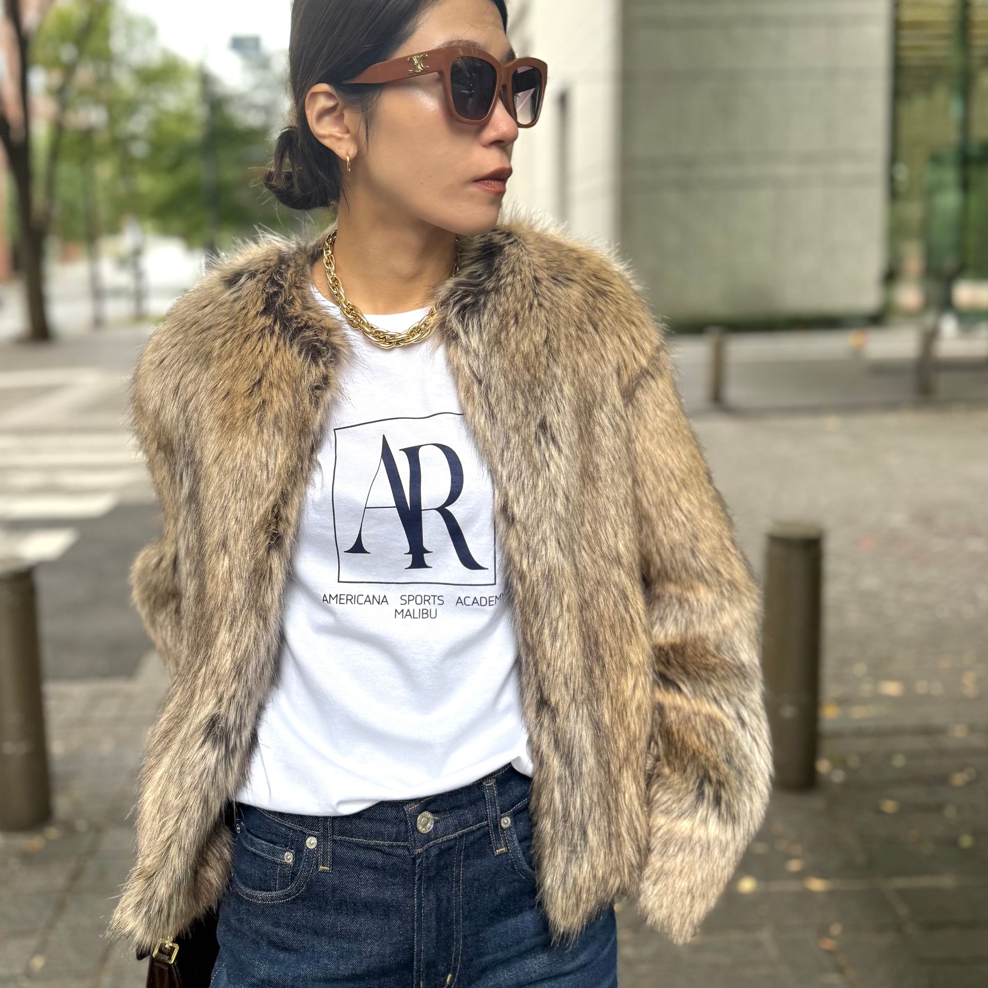 ファーアイテムの鉄則とも言える Tシャツ × デニムの着崩し。