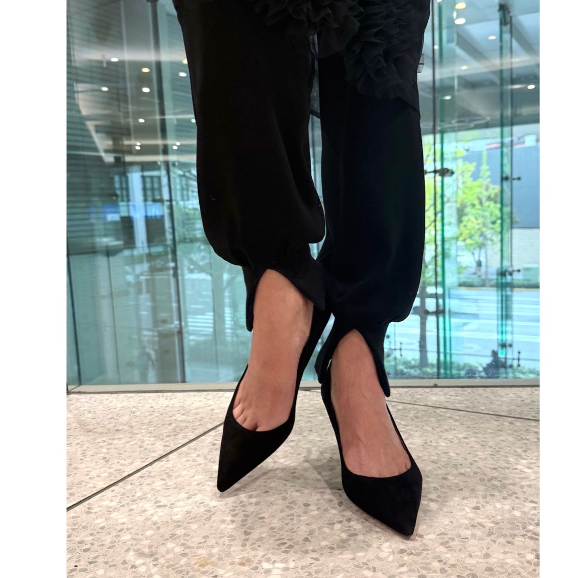 高めのヒールながらも安定感があり、デザイン性とビジュアルを兼ね備えたパーフェクトシューズ。