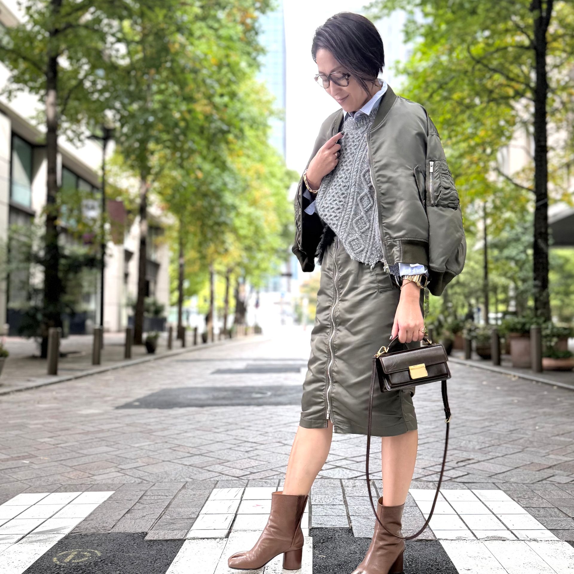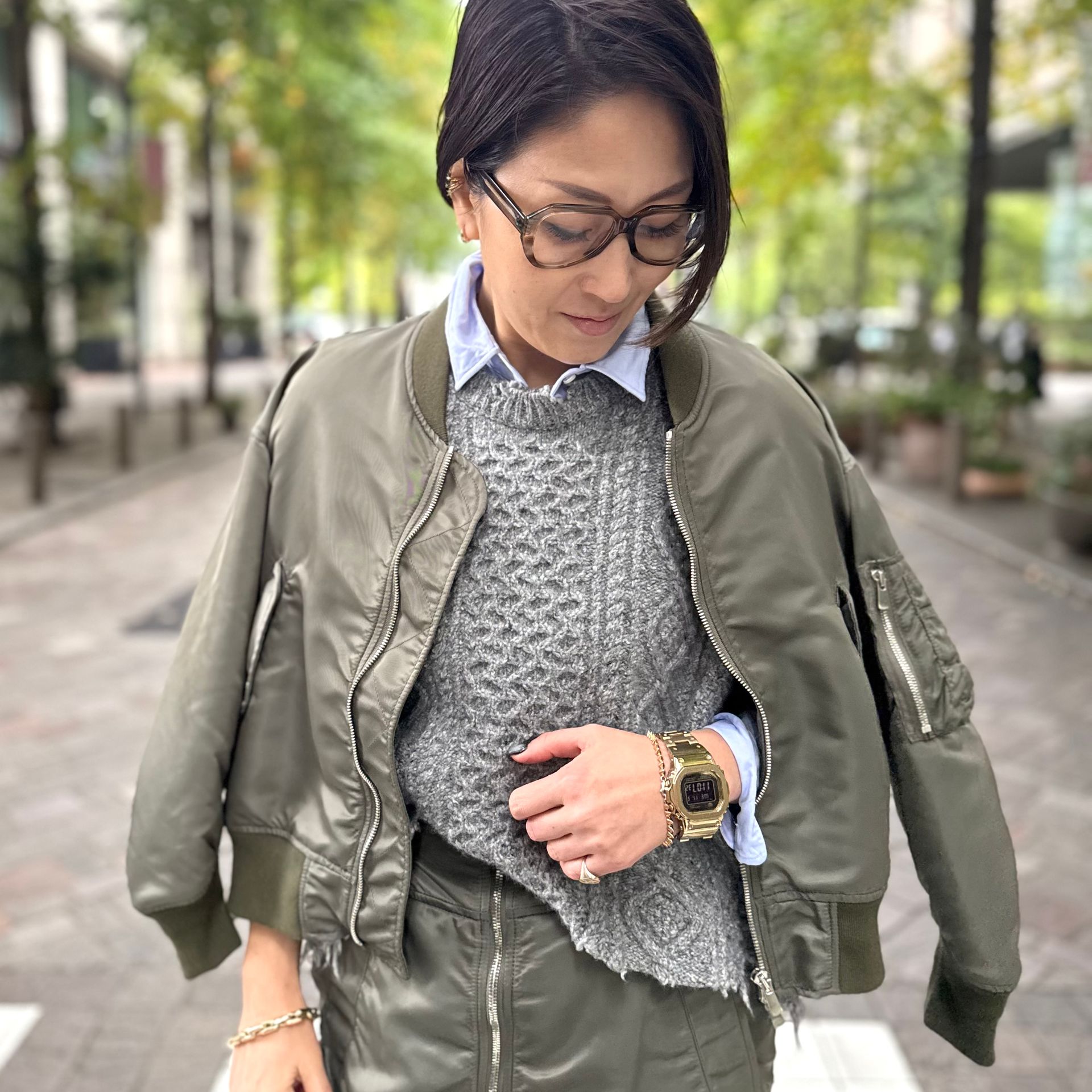 ショート丈のバランスでスタイルアップさせてくれるコルピエロのMA-1は、カーキ、ブラックの2色展開。