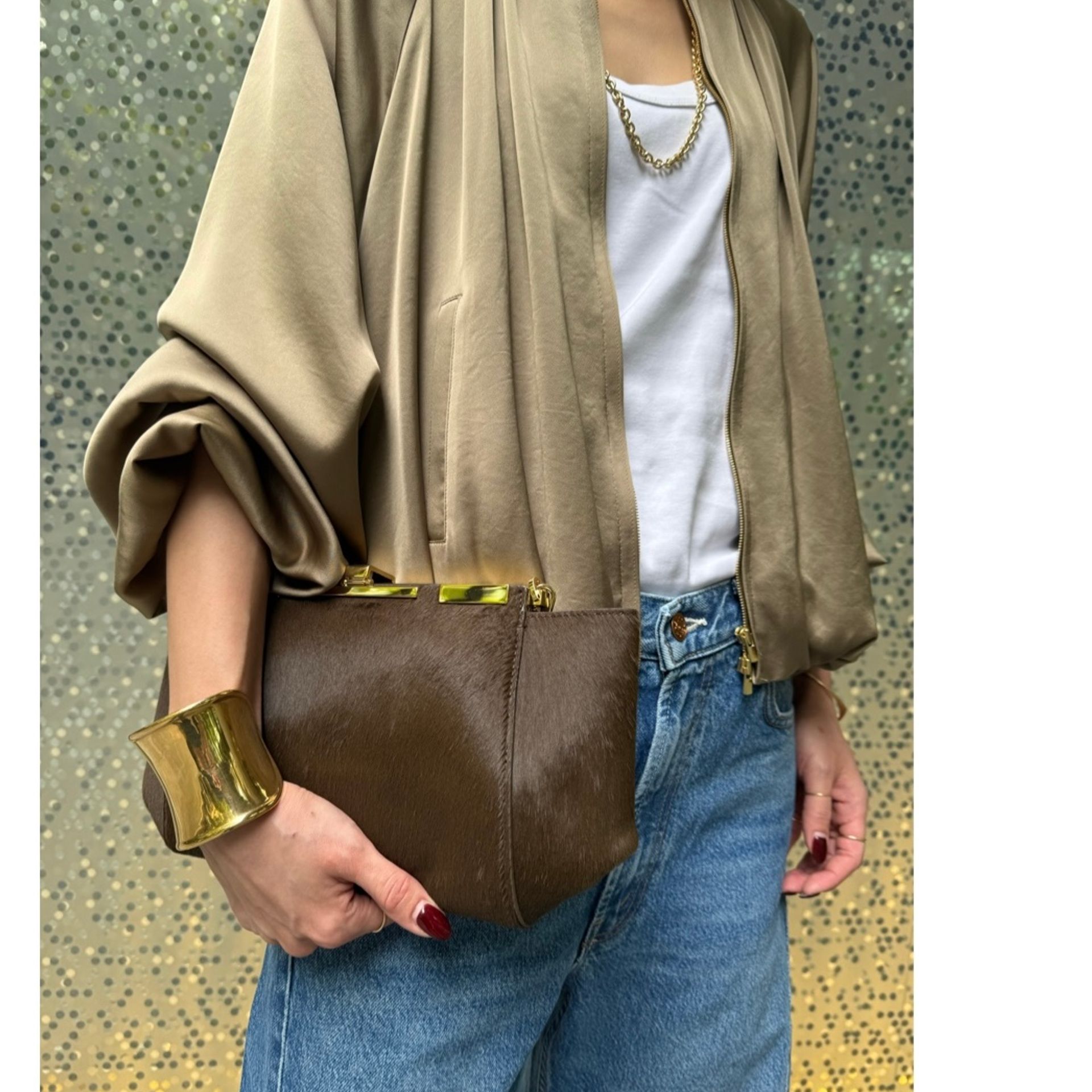 このカーキがかった絶妙ブラウンのハラコ素材なら、ちょっぴりタフな表情でスタイリングの" スパイス "として存分に力を発揮してくれます。