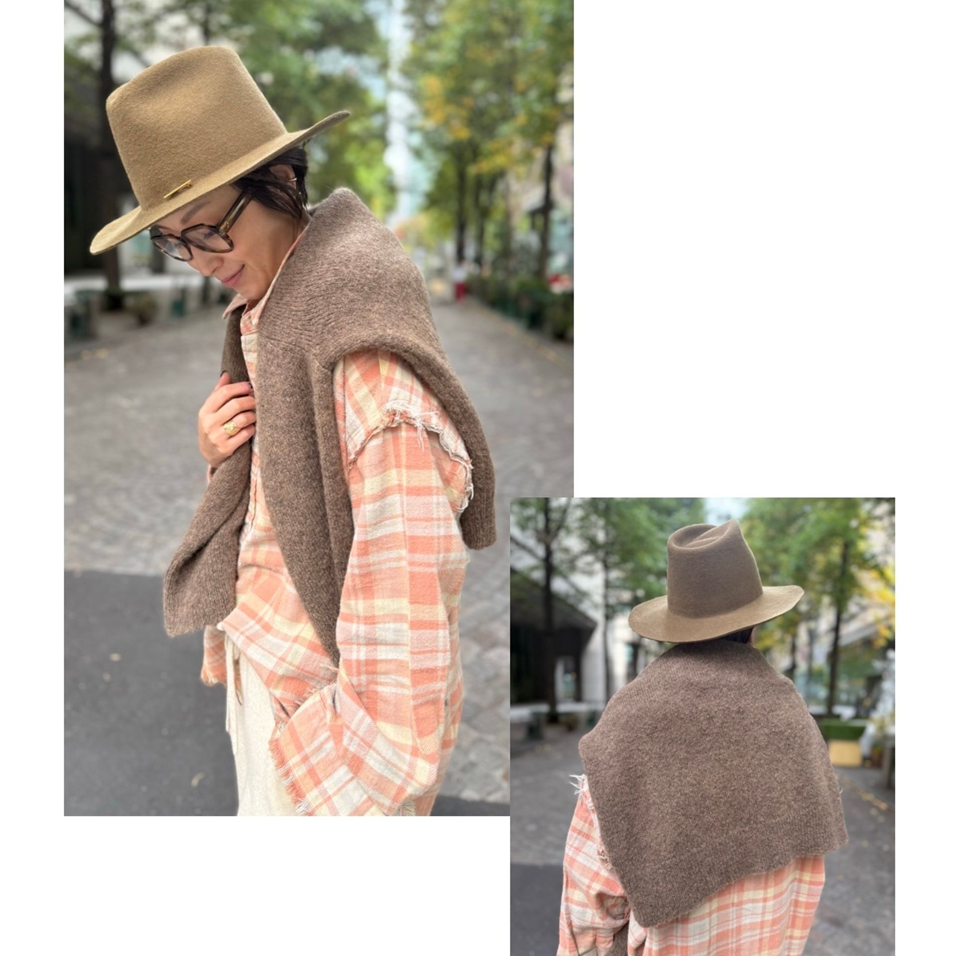 切りっぱなしのようなフリンジの縁取りのタフさとケーブル編みの懐かしさという相反するディティールのコントラストが洒落感を際立たせて...