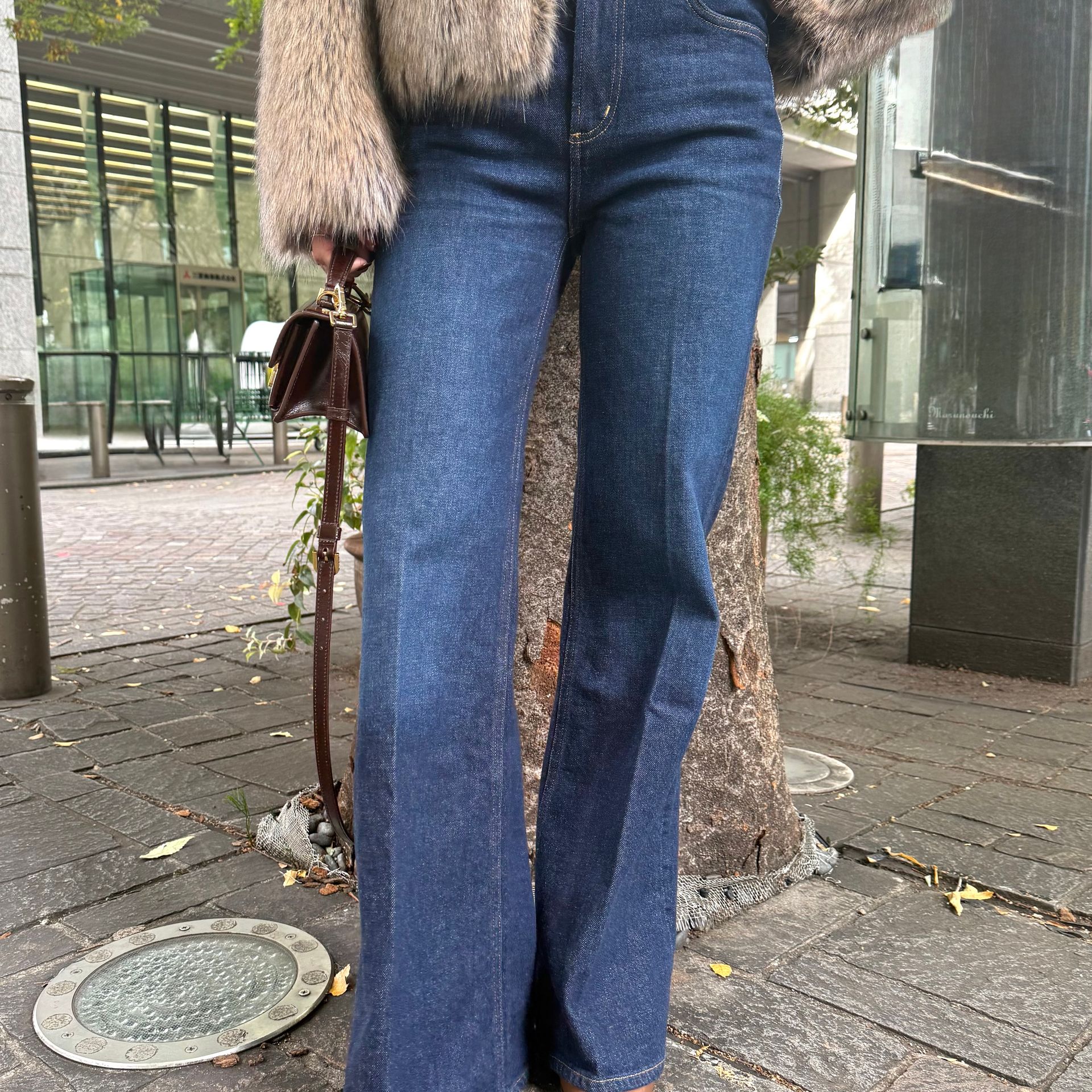 膝の絞りが抑えられた今年らしいフレアラインのインディゴデニムは新しくワードローブに加えたくなる1本。