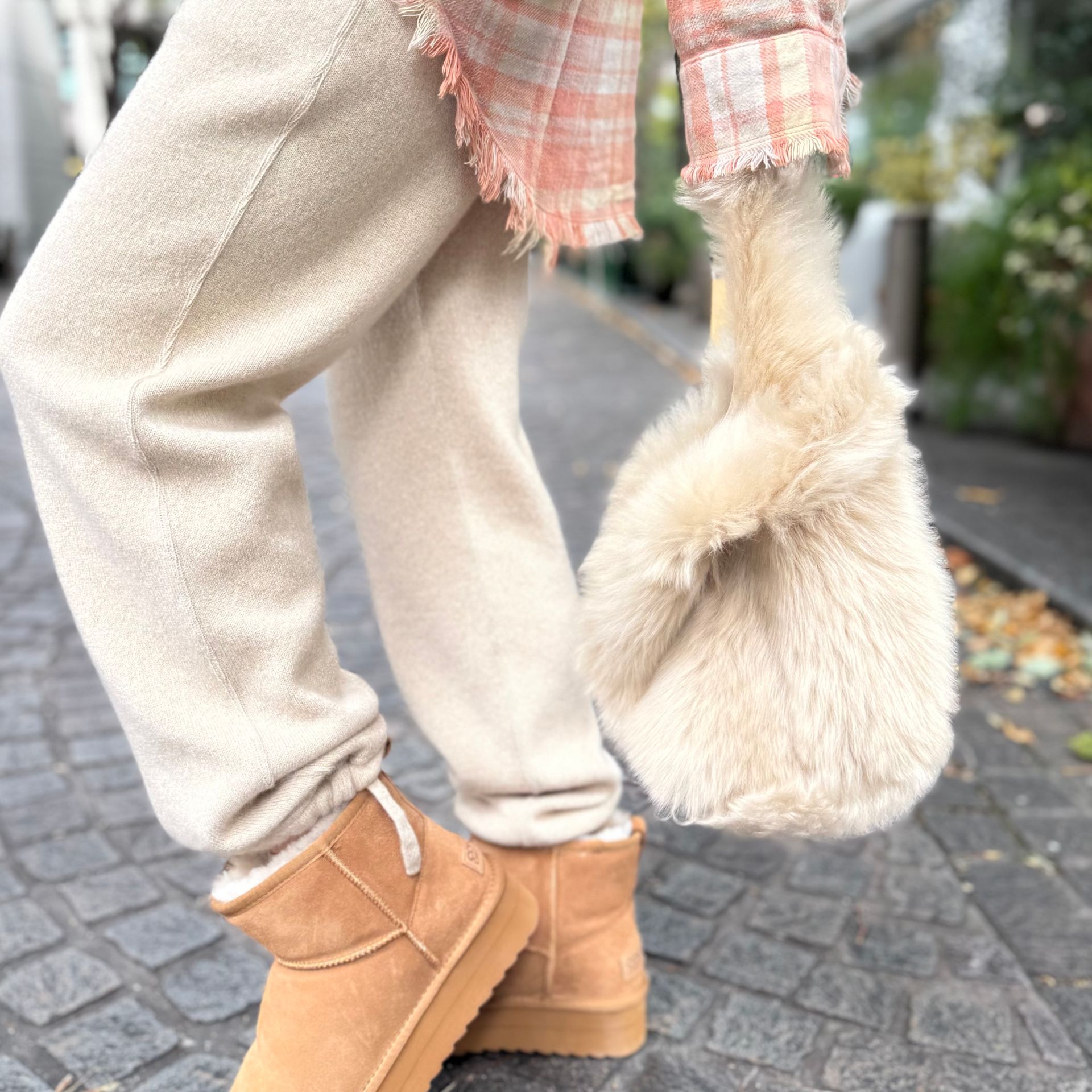 KARL DONOGHUE からはコロンとしたシルエットが可愛いファーバッグ。ラフなスタイリングにもファーの質感が大人のカジュアルをランクアップさせてくれます。