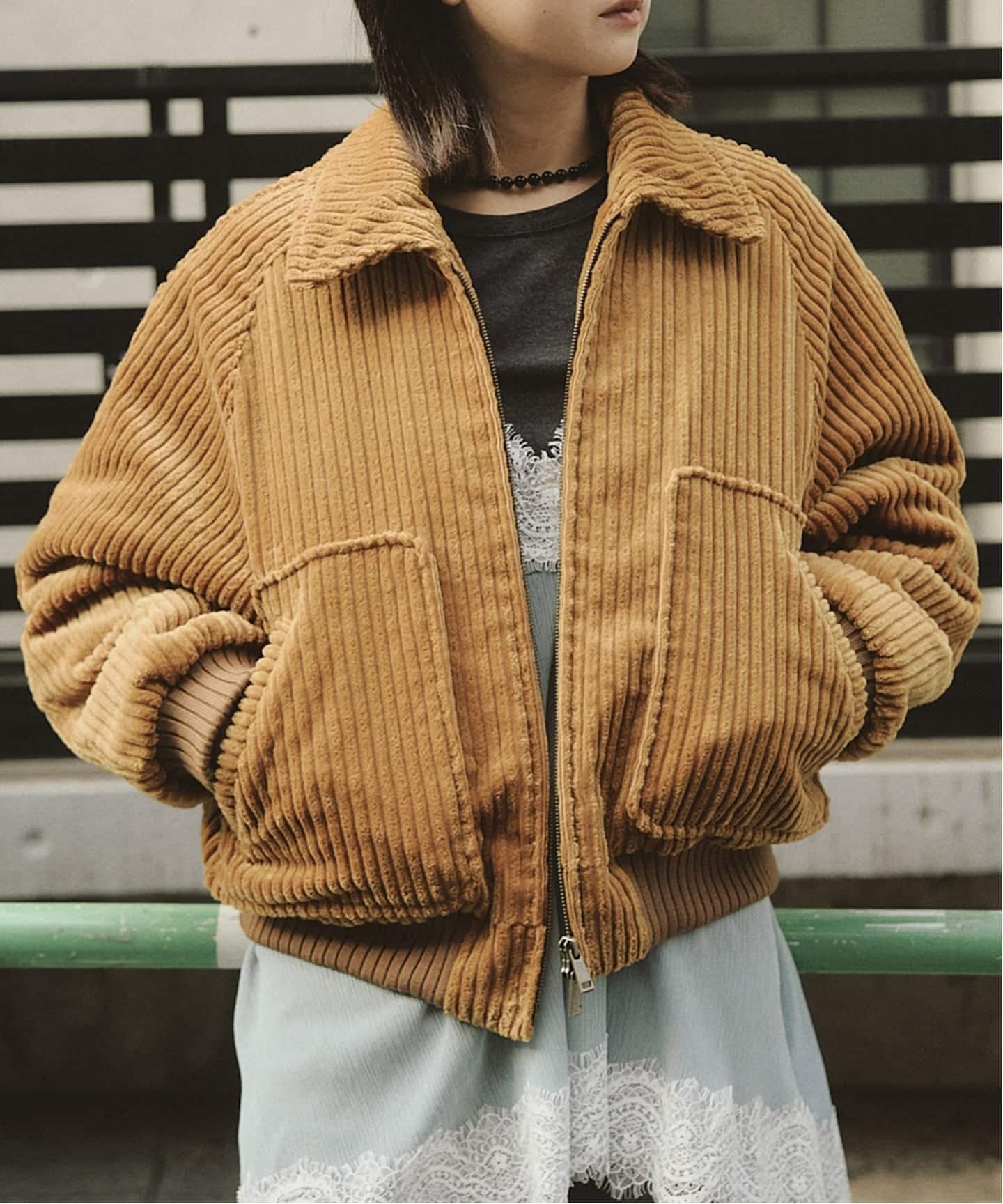 オーバーサイズのトレンド感溢れるブルゾン。程よい丸みと光沢感、首元のディティールが女性らしく、着映えする一枚です。