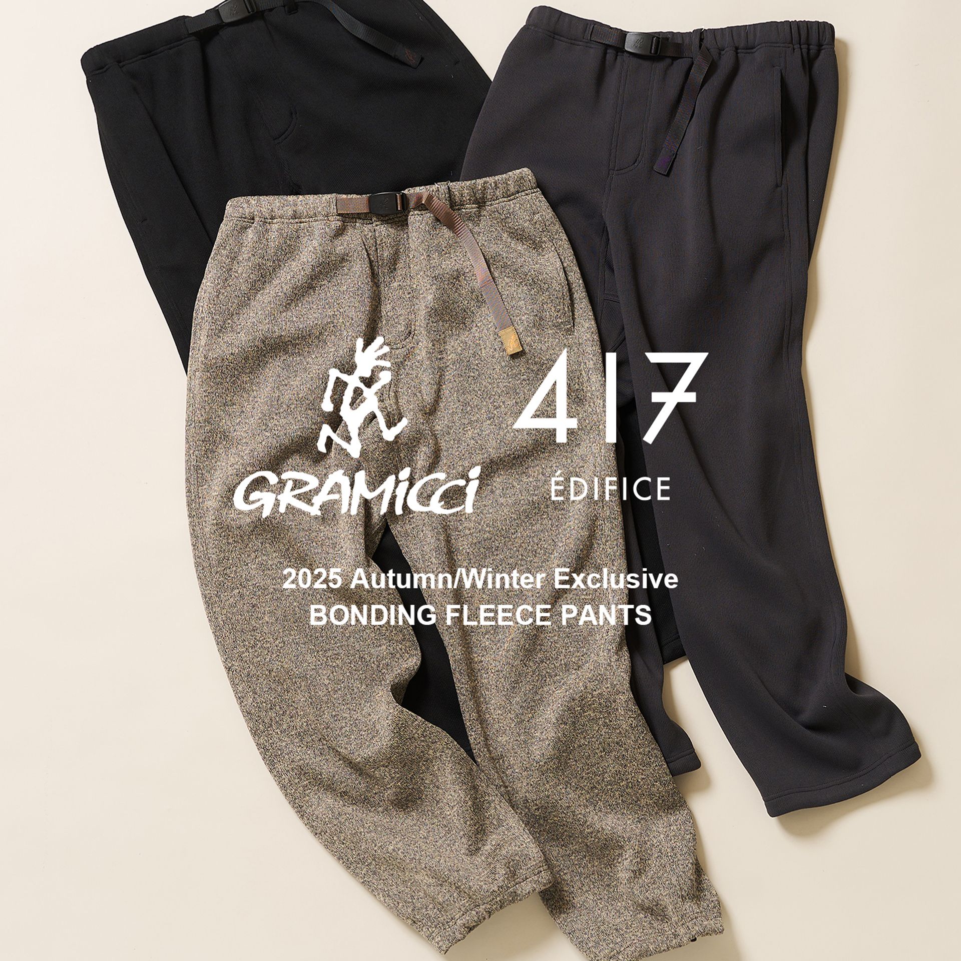 冬の定番として高い人気を誇る「GRAMICCI × 417」の別注ボンディングフリースパンツが、今季アップデートして登場。着心地の良さと上品な見た目を両立した名作に、新色“チャコールグレー”を加えたラインナップです。シーズンを重ねるごとに進化を続ける、417の冬の定番をぜひお見逃しなく。