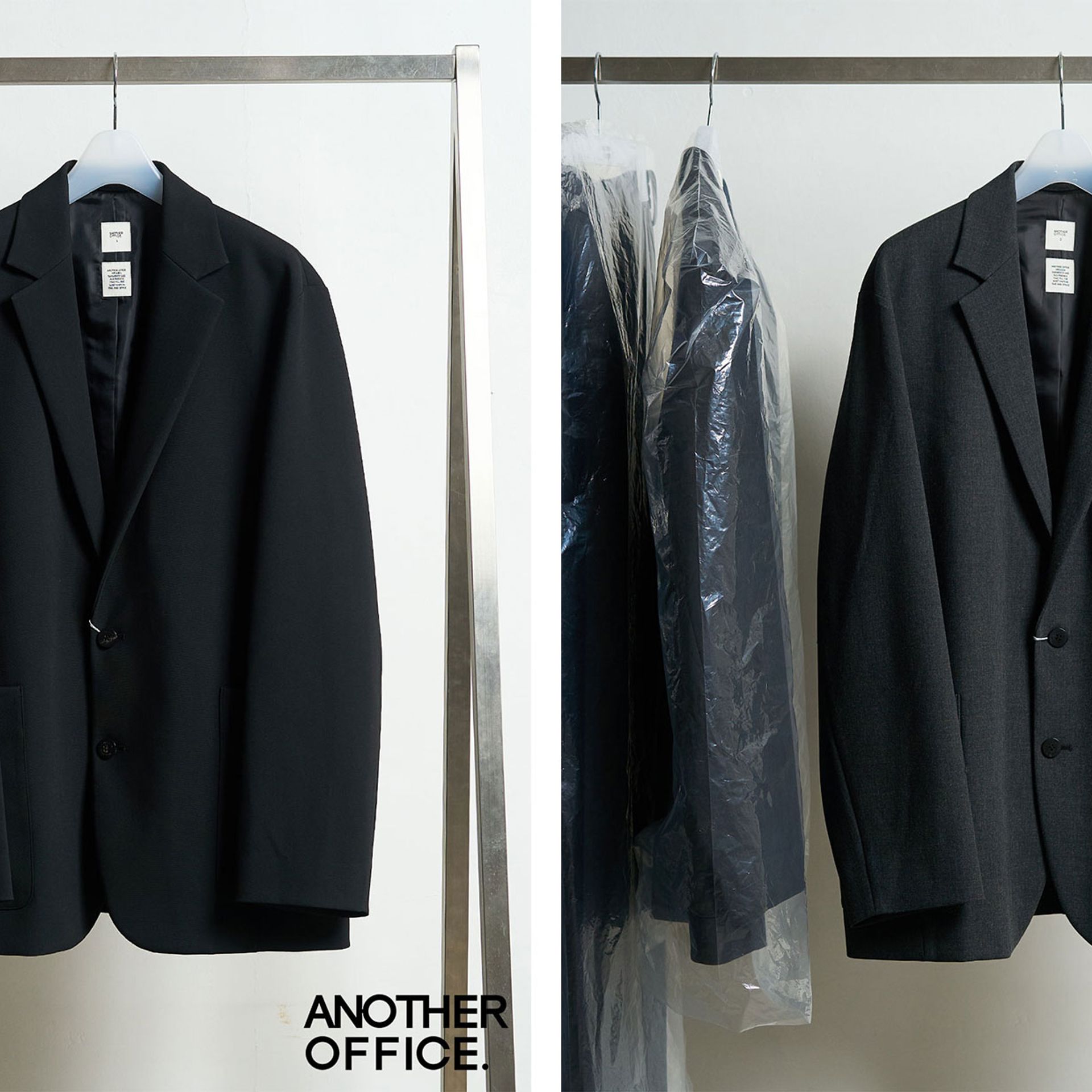 ANOTHER OFFICEを象徴するシングルジャケットを、上質な素材で再構築。伸縮性と復元力に優れたプレーンウィーブ生地を使用し、洗濯後も型崩れしにくいタフな仕上がりです。流れるような肩のラインと自然な落ち感が生む、美しいシルエットが魅力。シンプルながら洗練された2ボタンデザインで、季節を問わず着まわせる一着です。