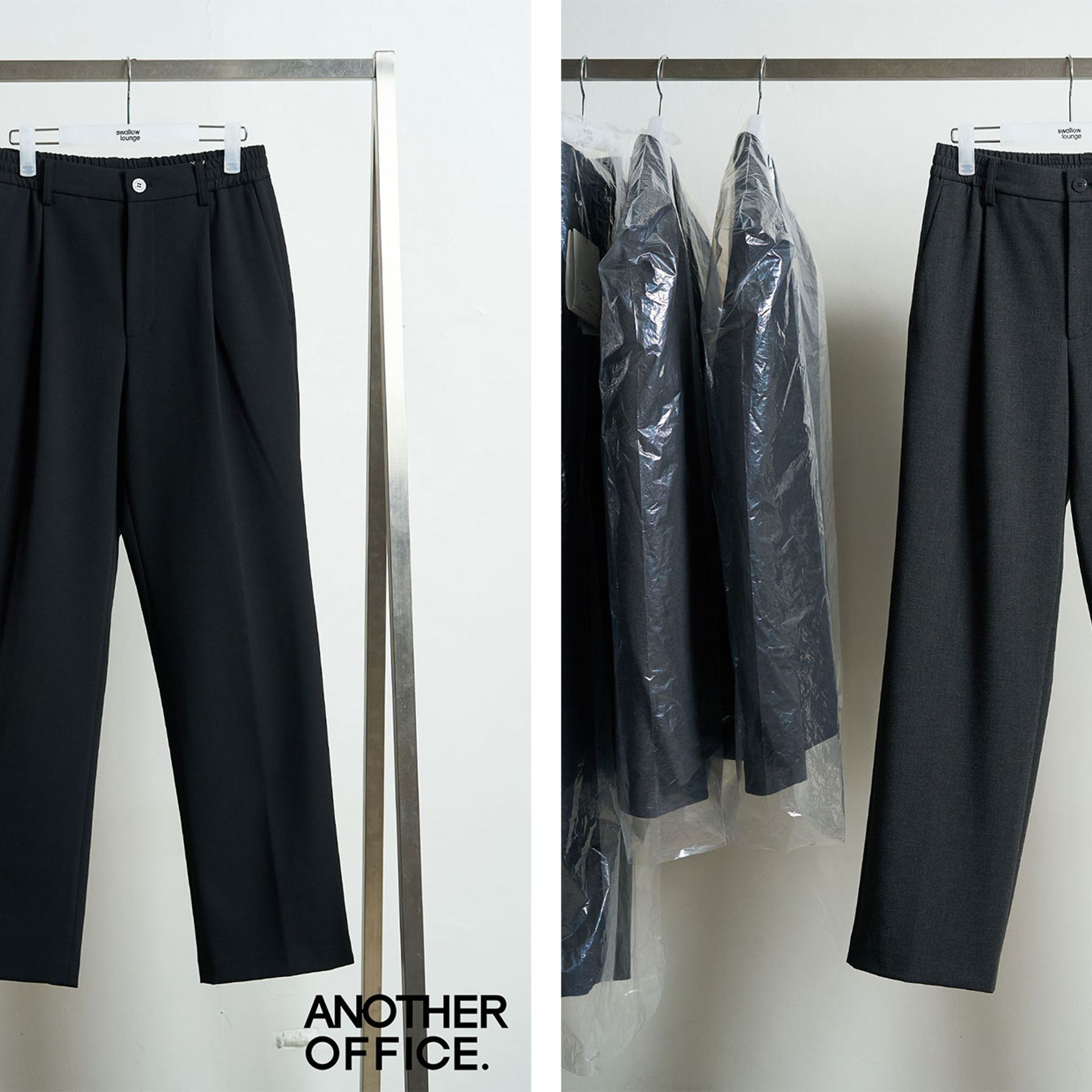 ANOTHER OFFICEの優雅なシルエットを堪能できる定番スラックス。流れるようなラインと適度なゆとりがありながら、広がりすぎずすっきりと落ちる美しいバランスが魅力です。伸縮性と復元力に優れたプレーンウィーブ生地を使用し、洗濯後も型崩れしにくいタフな仕上がり。ジャケットとのセットアップスタイルはもちろん、単品でも活躍するオールシーズン対応の一本です。