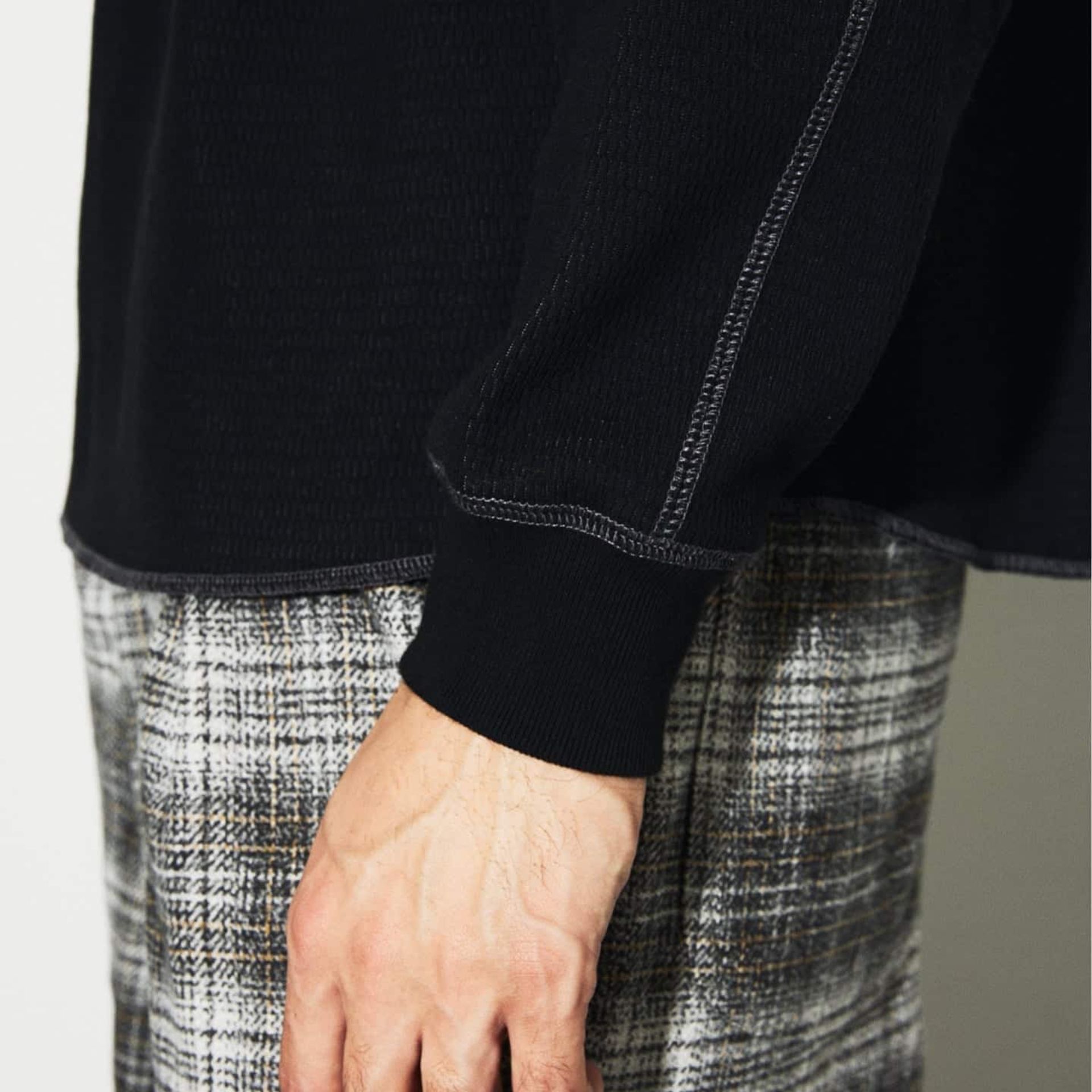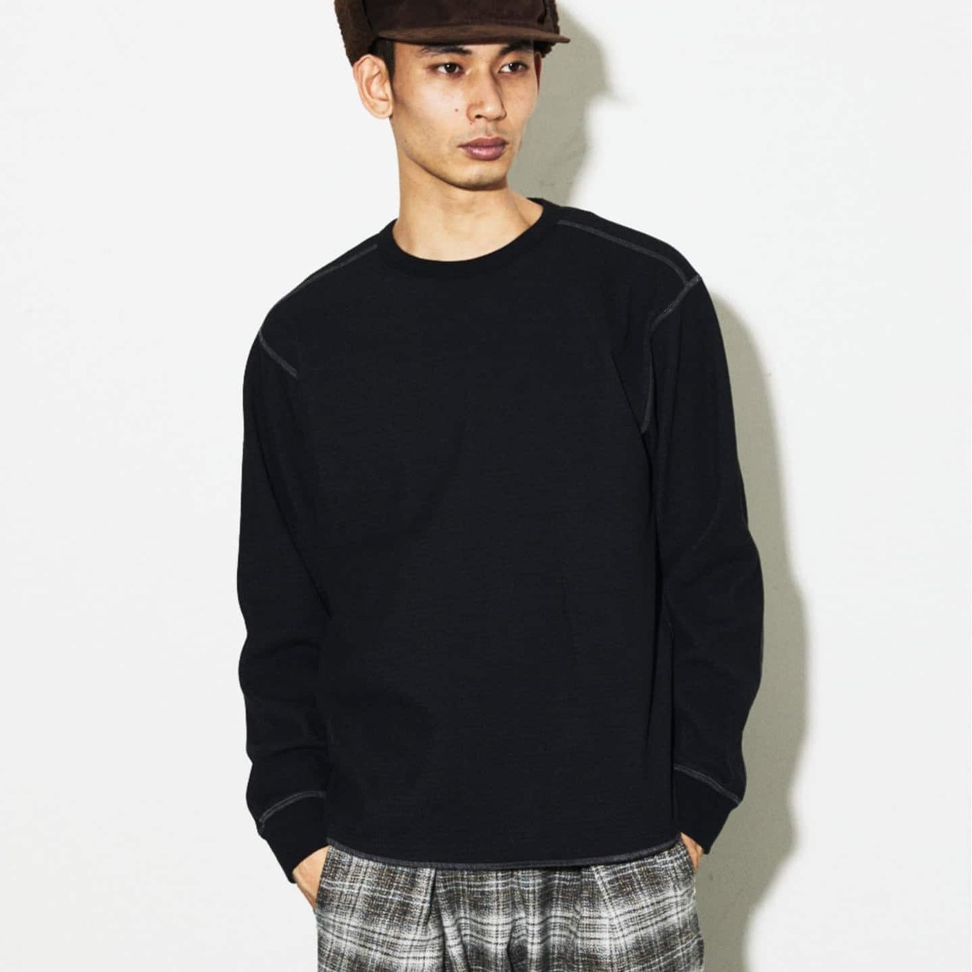 表面のサーマル素材と裏起毛で、寒い季節もぽかぽか快適。