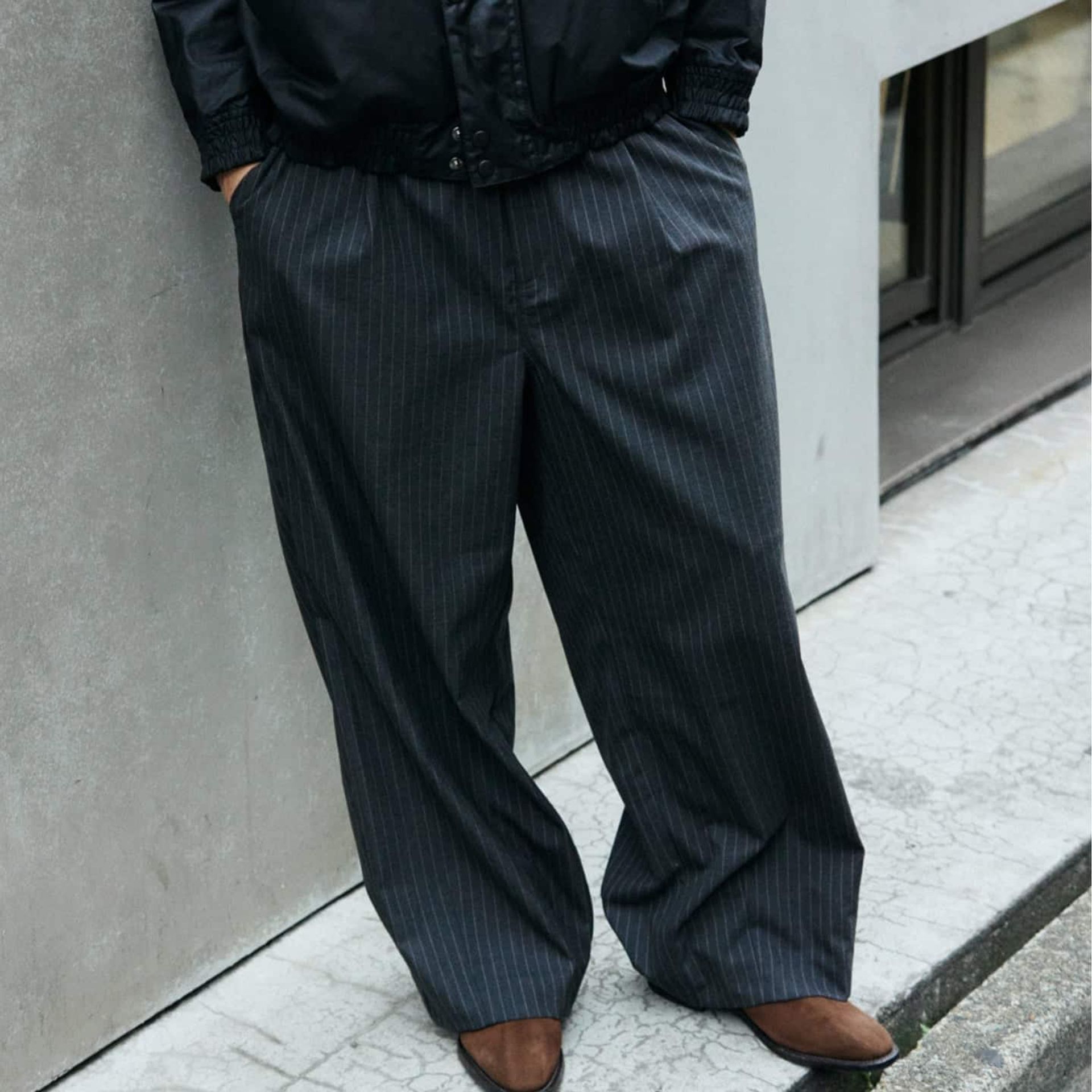 《予約》TR モダン ツイル ワイド スラックス / ストライプ / 無地
