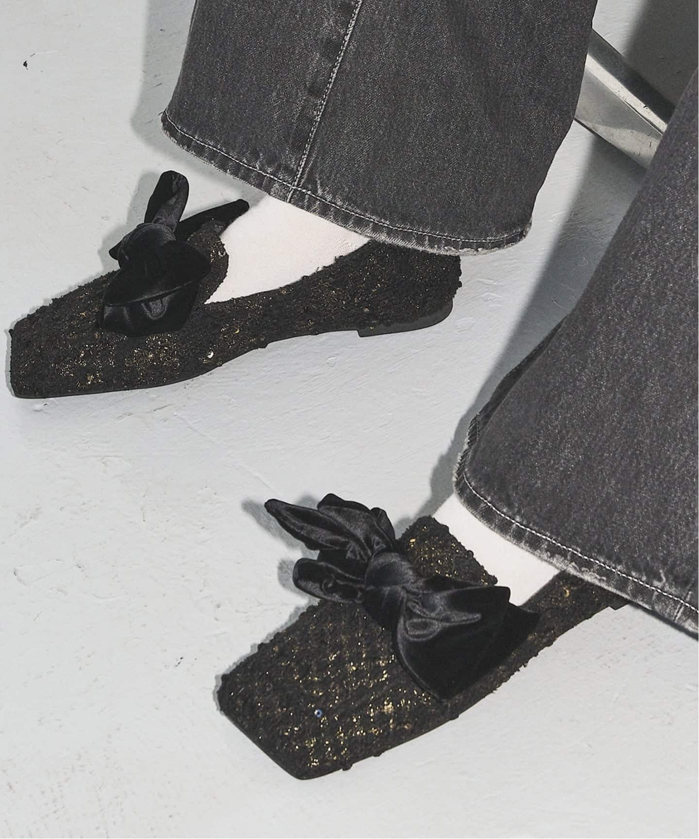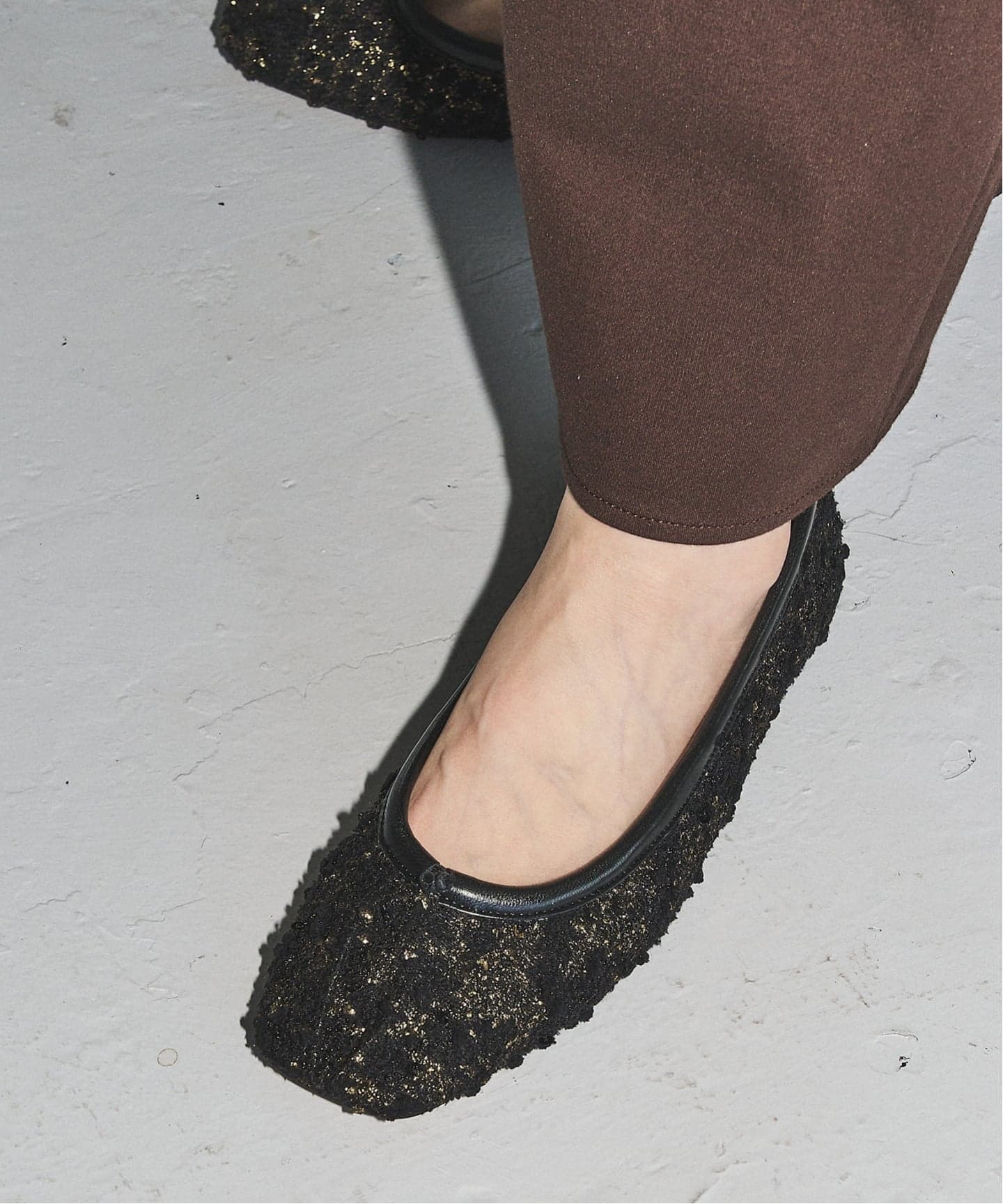 秋冬のムードを高めてくれる、表面感のあるツイード素材のフラットシューズ。ポインテッドトゥとすっきりとした履き口のラインが足元を美しく演出します。