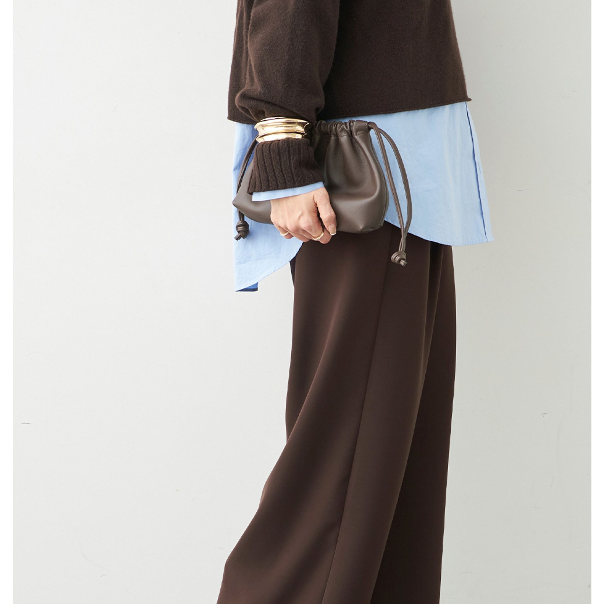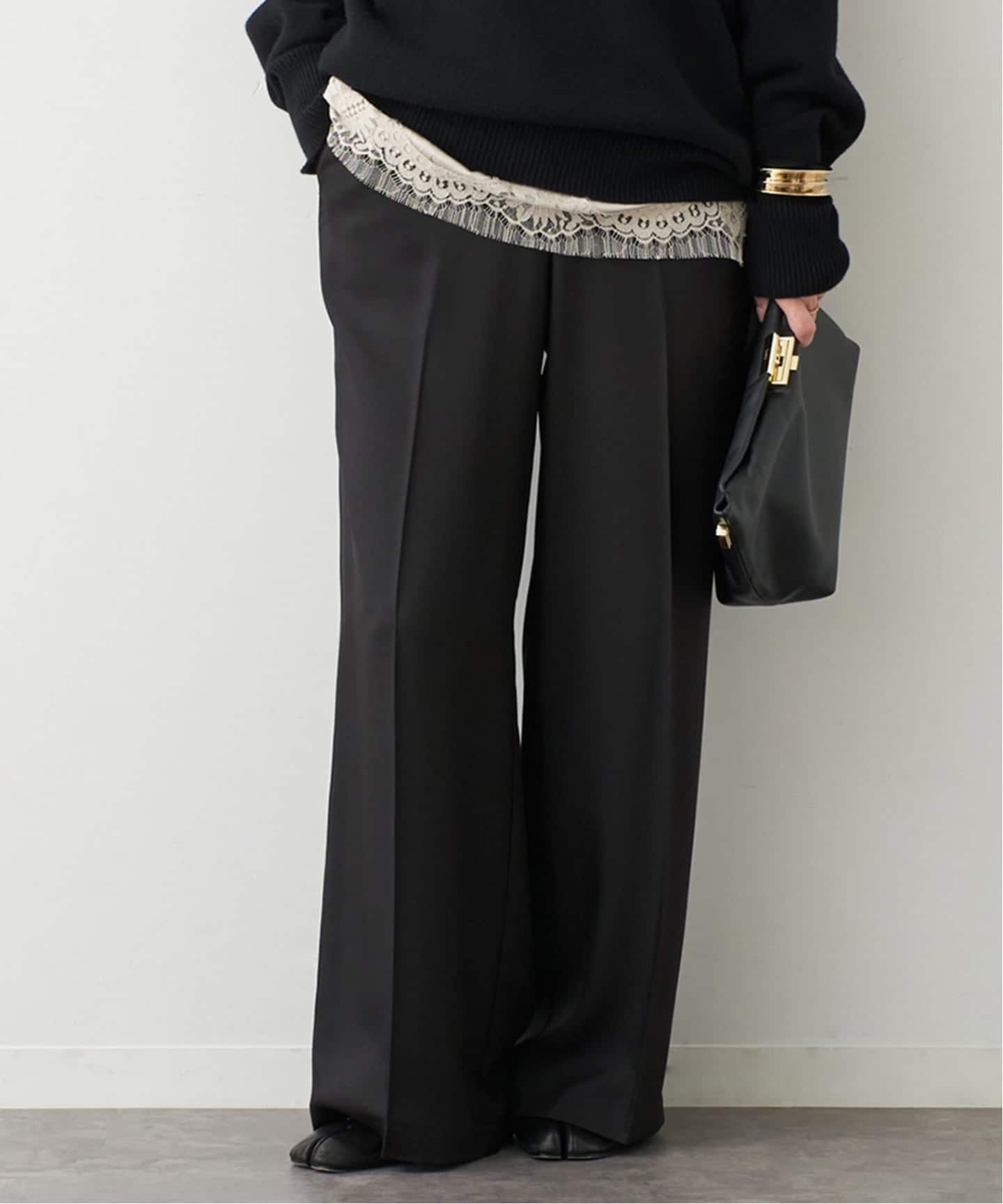 「このパンツかなりワイドですが落ち感がよくぼってりしないので野暮ったくならずラインが綺麗に見えます。ワイドパンツをエレガントに着たい方に是非おすすめします。」