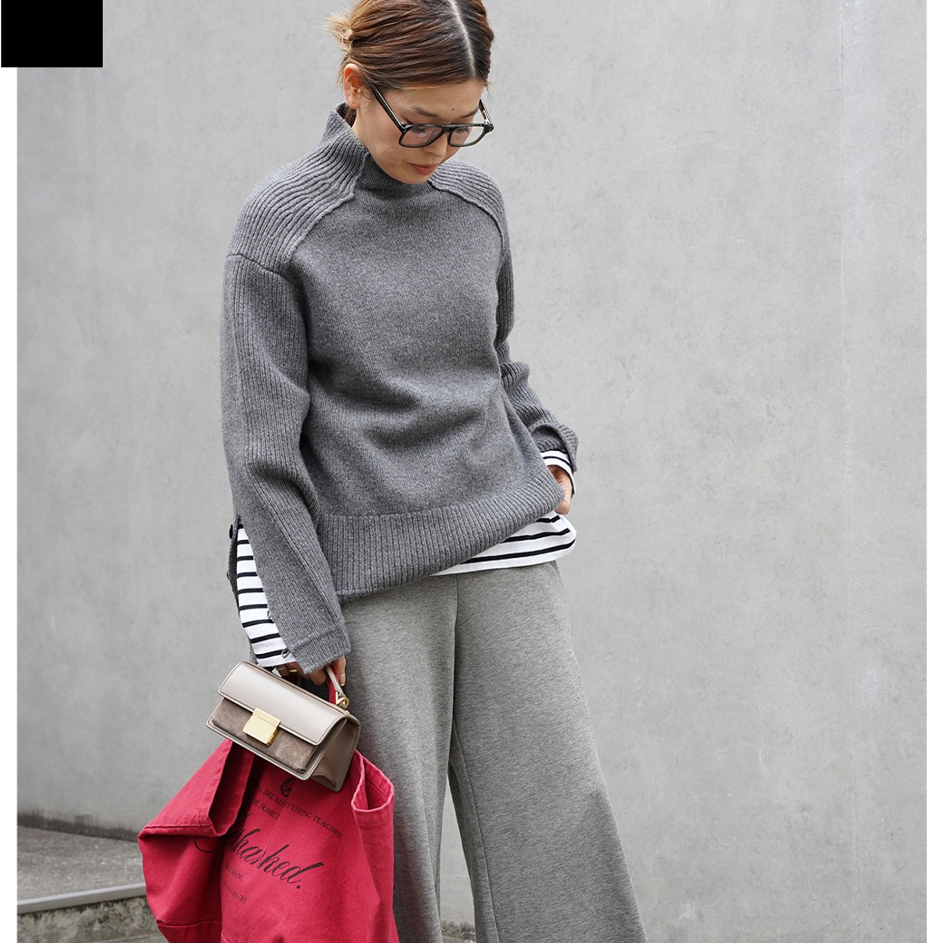 「こちらはタートルがきちんと自立してフィットするのに苦しくなくコルセットのようにも見えない、まさに理想通りです。身幅や袖のゆるっと感やリブでとまるところも好みです。」