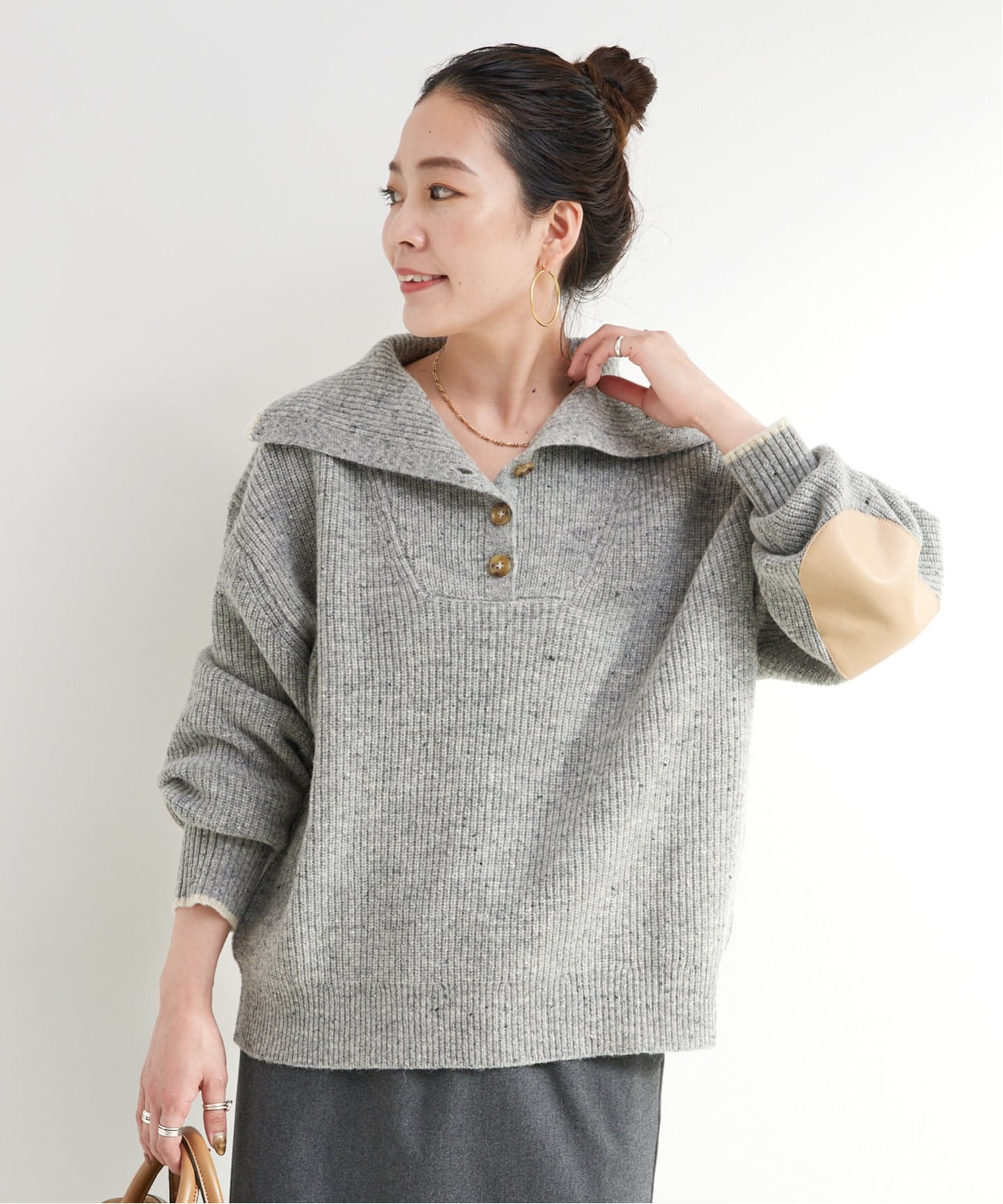 襟付きデザインや、首元のボタン仕様、エルボーパッチなどレトロ感あるディテールが程よいアクセントに◎