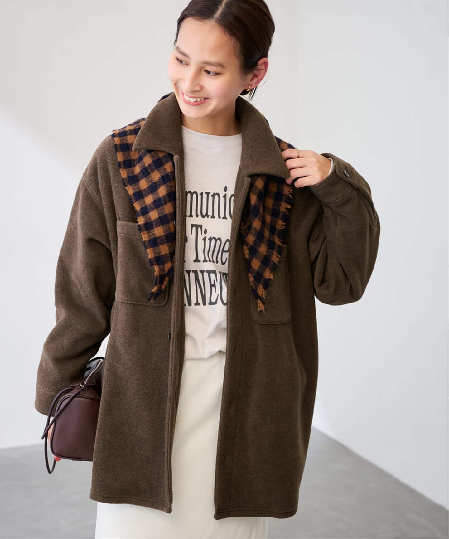 ゆるっとしながらも、前後の着丈を揃えることですっきりとした今の気分に合うデザインに。