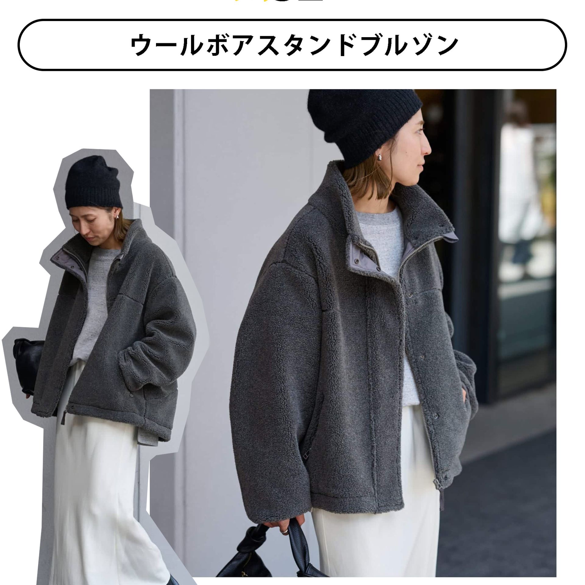 綺麗めスタイルにもハマるボアブルゾン。