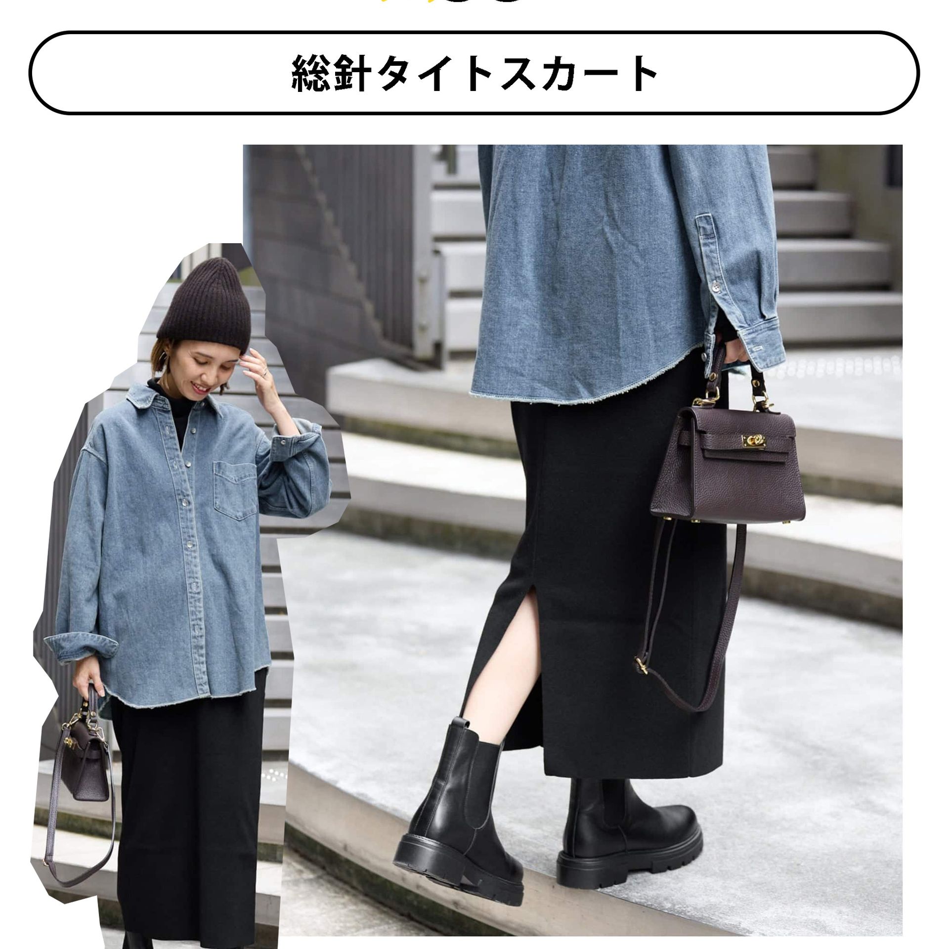 これからの時期に大活躍の総針タイトスカート。
