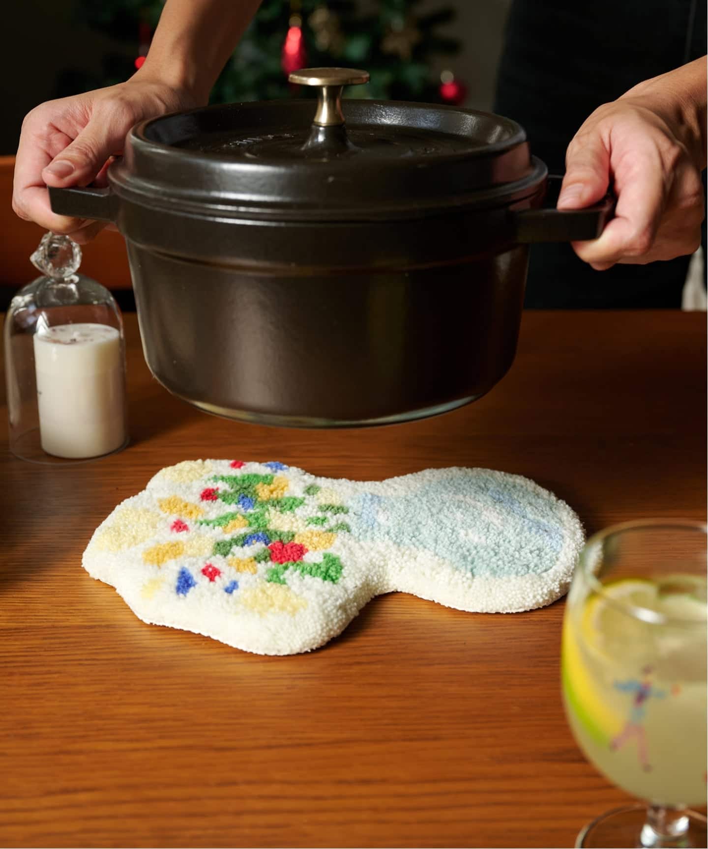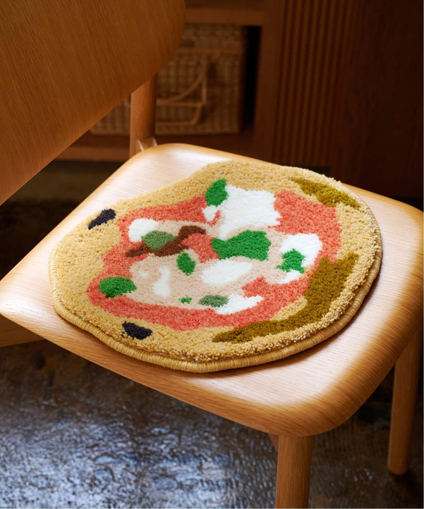 職人が糸を打ち込むタフティング技法で仕上げた、チェアパッド・ポットマット・コースターは、どれもニュアンスのあるイラストが絶妙に表現された逸品です。