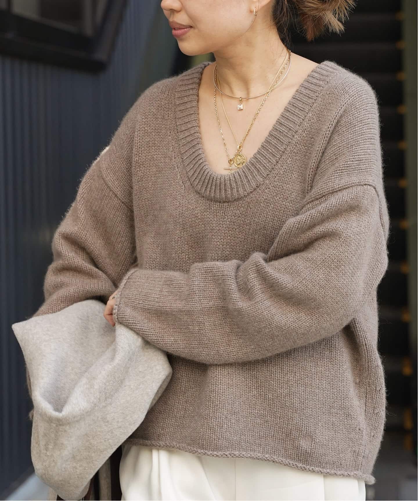 ジュエリーが絶対映えるなと想像して買ったパリブランドLOULOUのUネックニット。