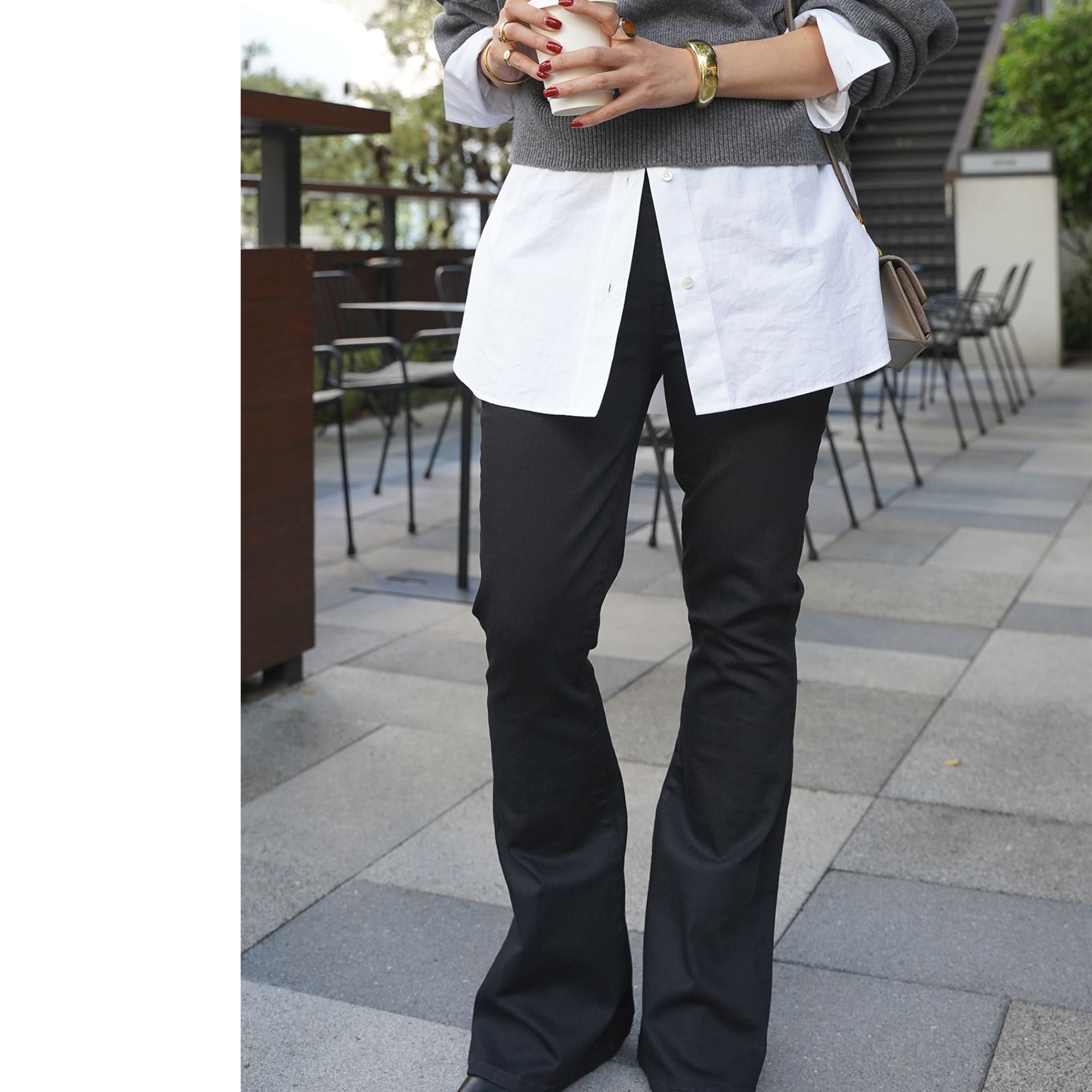 合わせたMotherのフレアカットは足をすっきり長く見せてくれるからオールシーズンでお気に入りのパンツ。