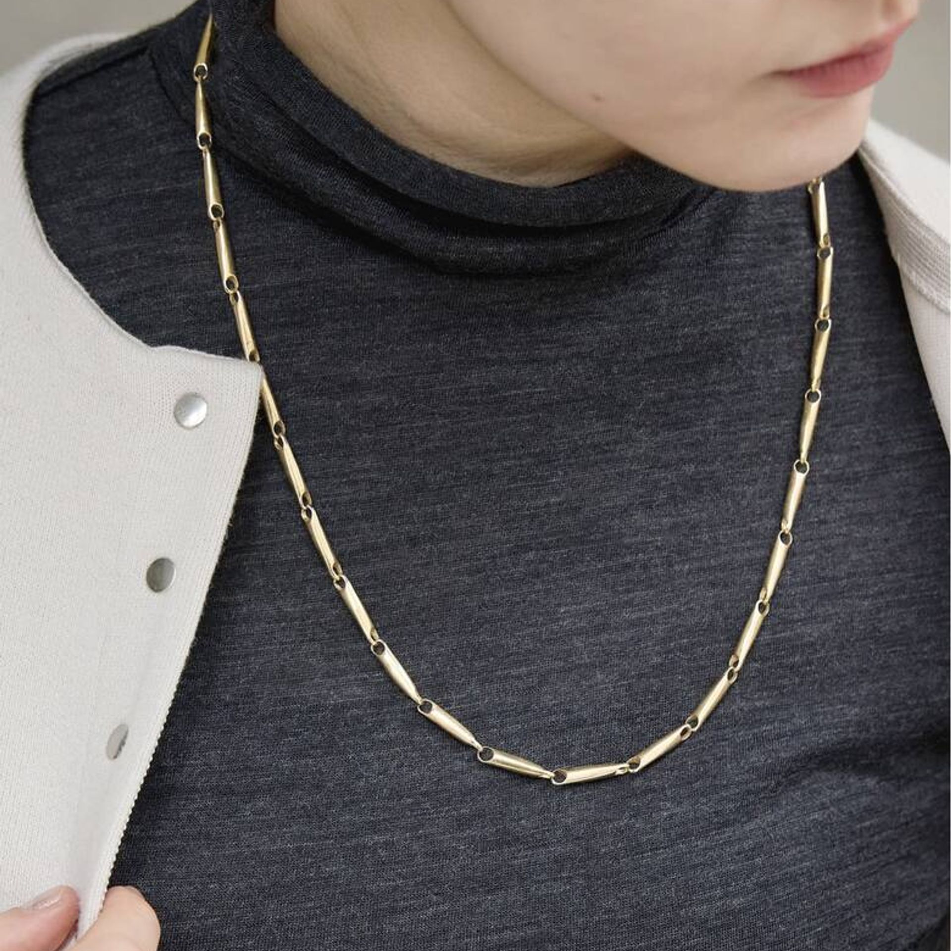 中空に仕立てたチェーンはボリュームがありながら軽い着用感が特徴です。