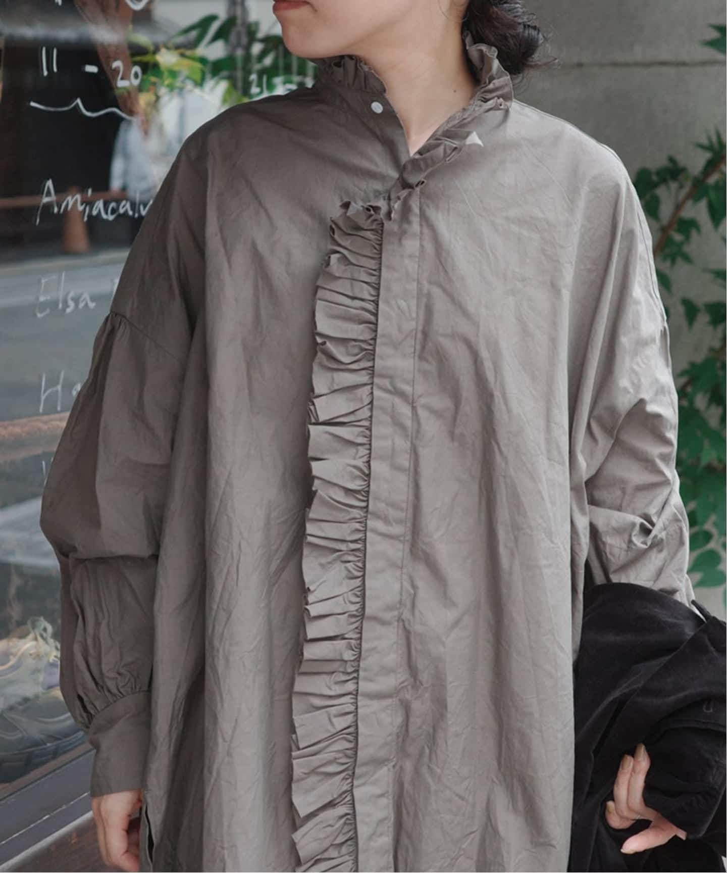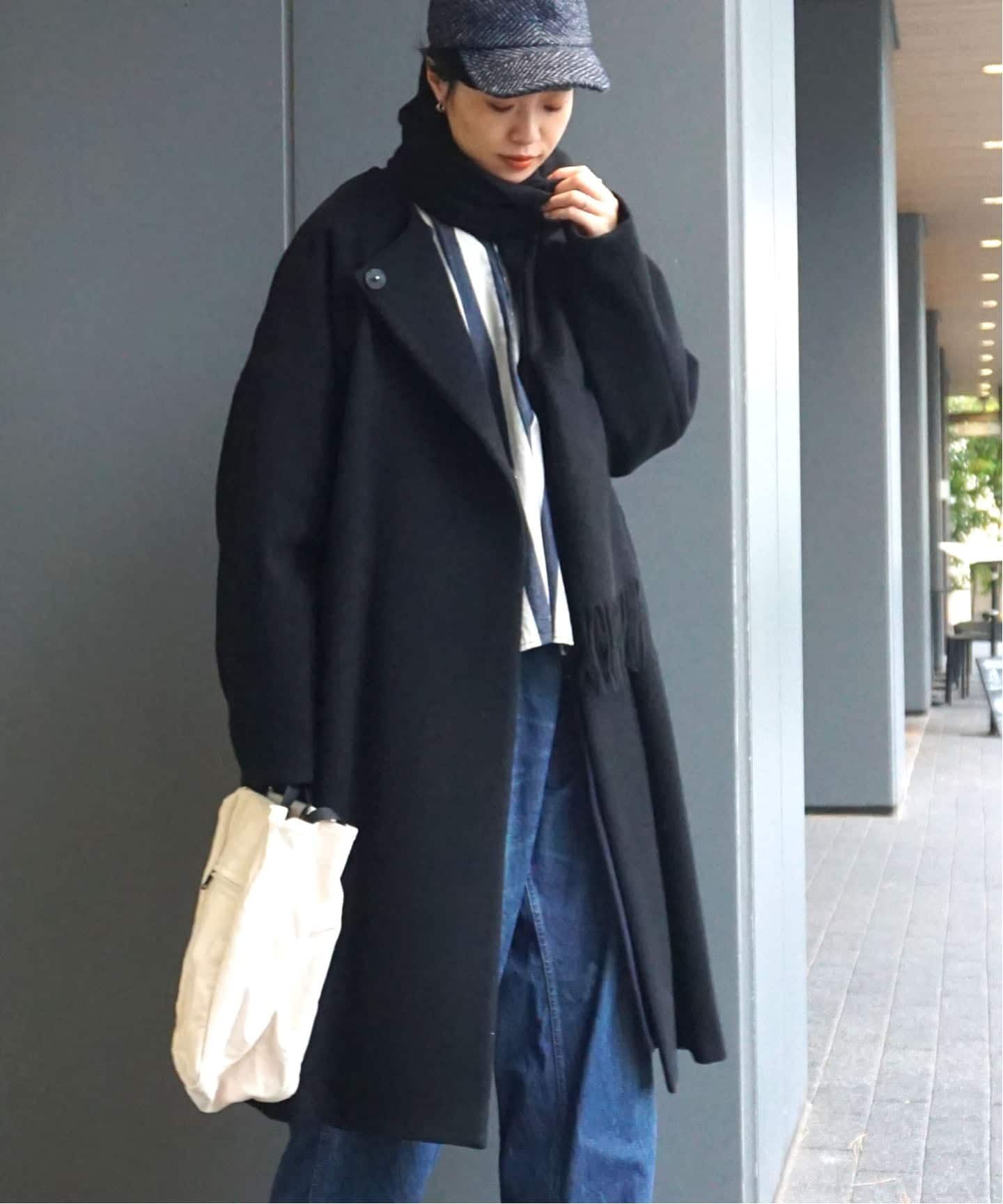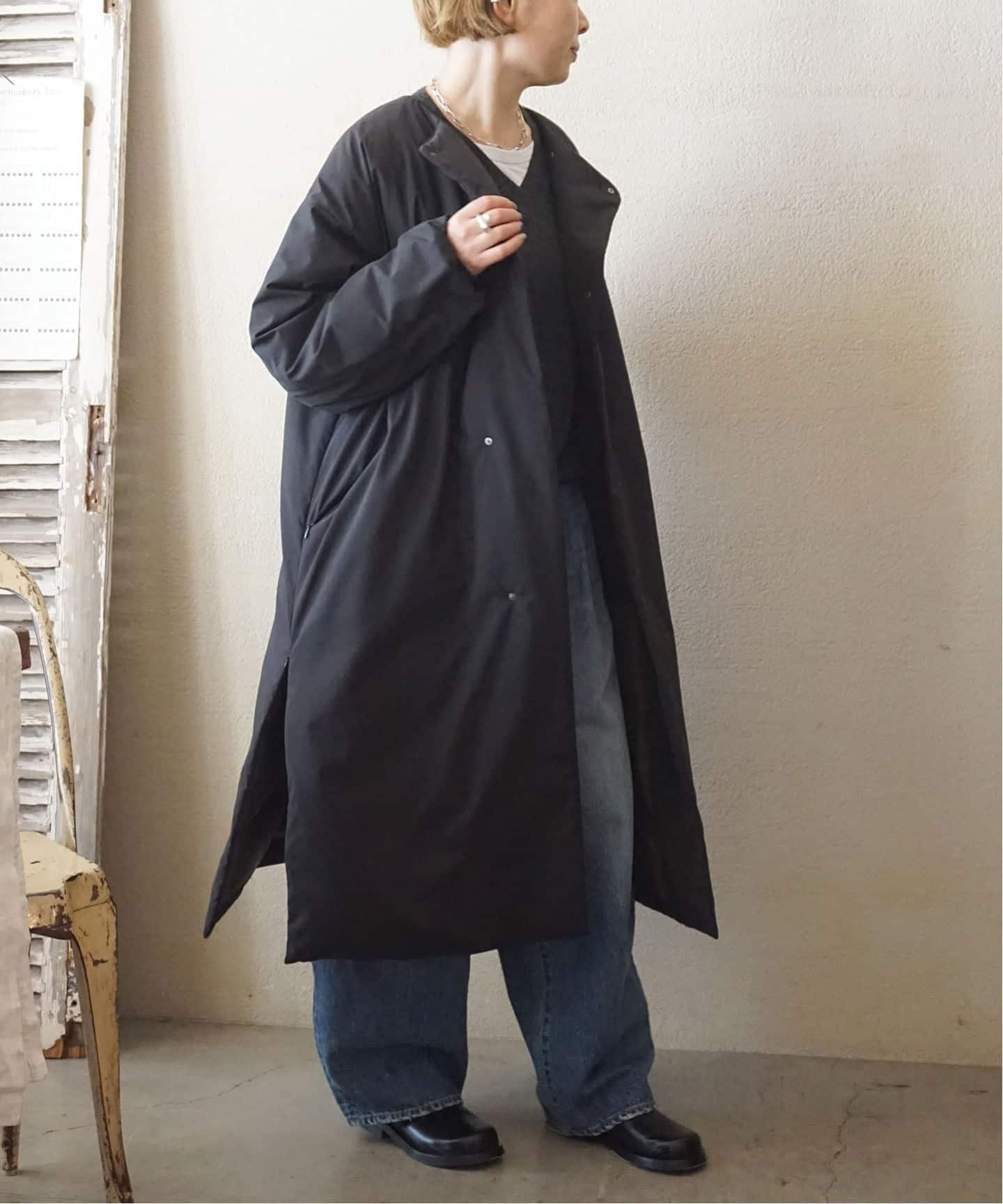 同じソフトモッサ素材を使用したノーカラーコート。オーバーサイズながら、すっきりとしたIシルエットの立体感が美しい一着です。パイルモッサシリーズはシーンを選ばず着用いただけます。