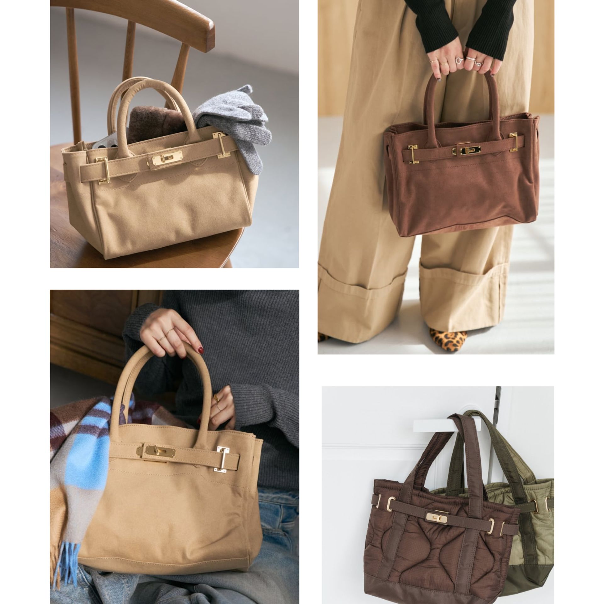ナイロンキルティングトートは軽やかで扱いやすく、カジュアルな冬コーデにさっと取り入れられます。