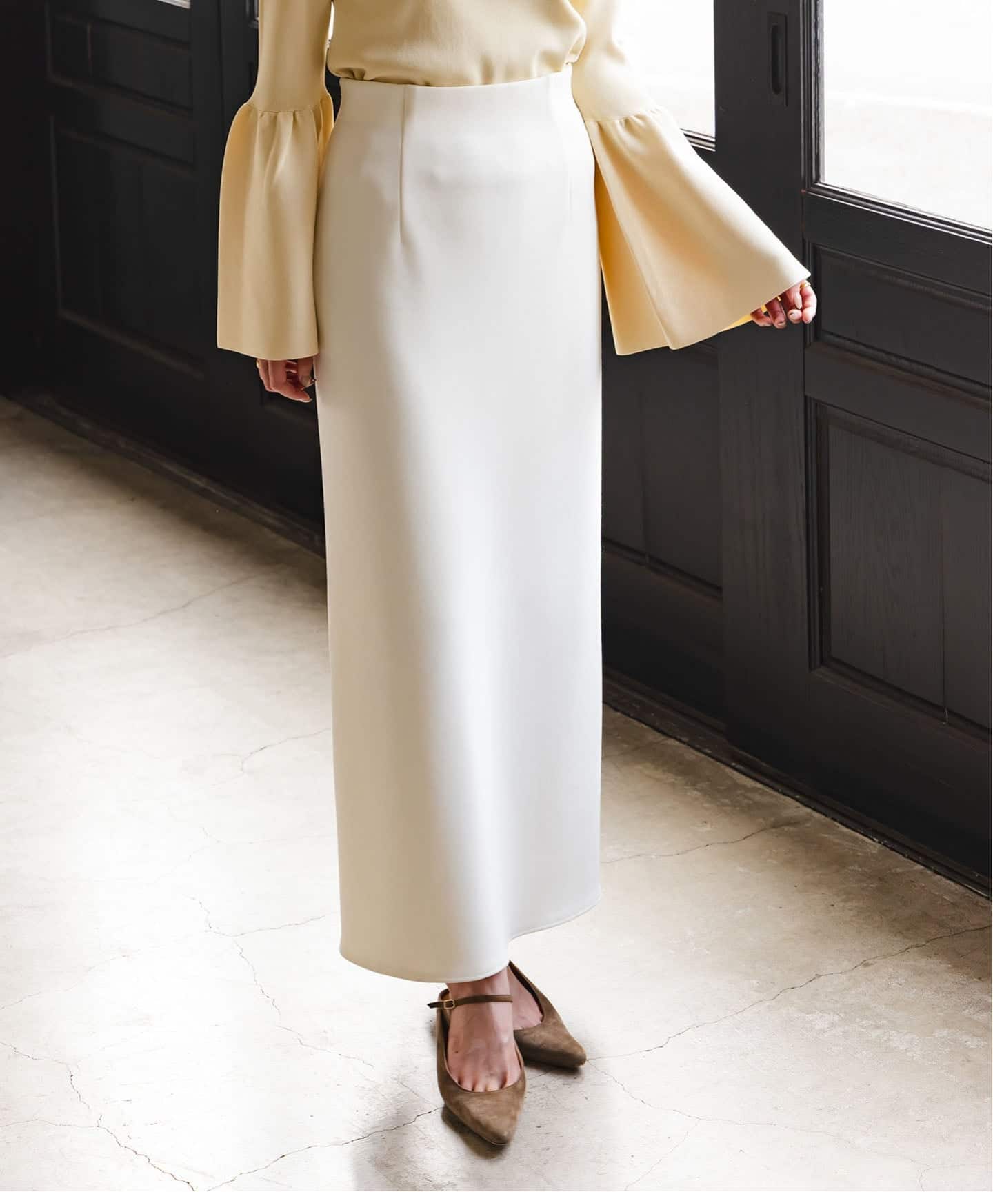 程よいボリューム感のあるニットは、タイトシルエットのスカートでバランス良く仕上げるのがオススメ。