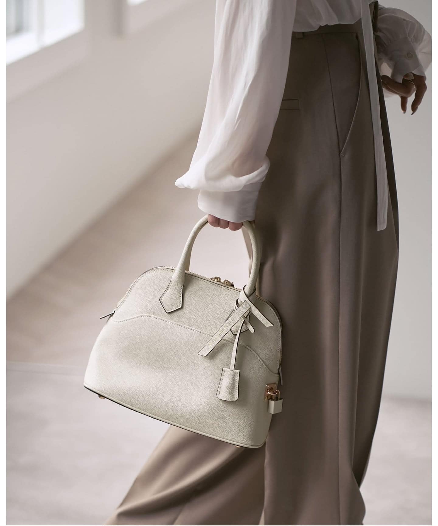 ベージュ×ホワイトの優しい色の掛け合わせが、女性らしい上品な印象に決まる秘訣。