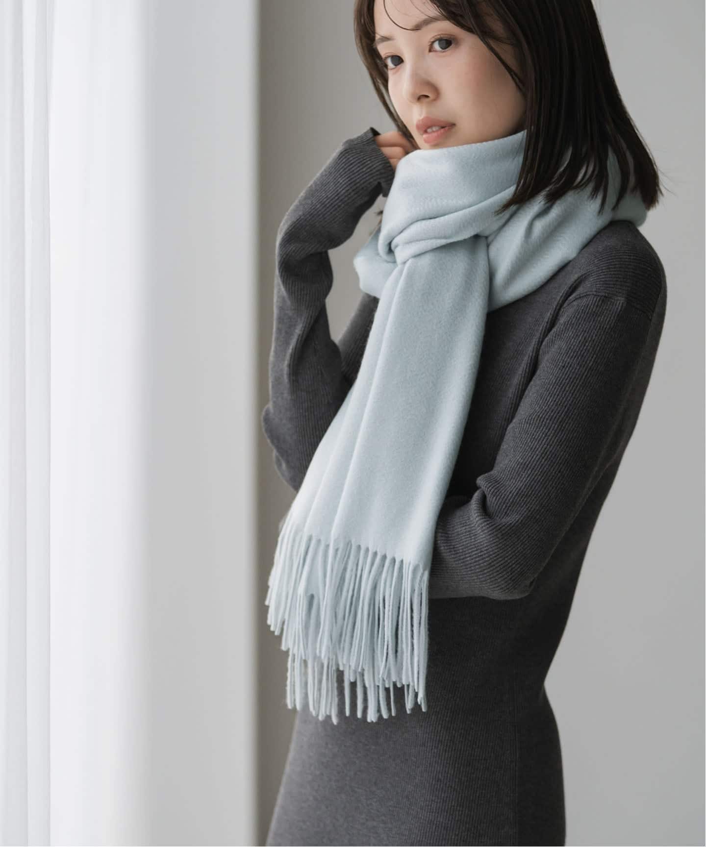 バッグとストールも寒色系で揃えて装い全体にまとまりを出すと、お洒落性がグッと引き立ちます。