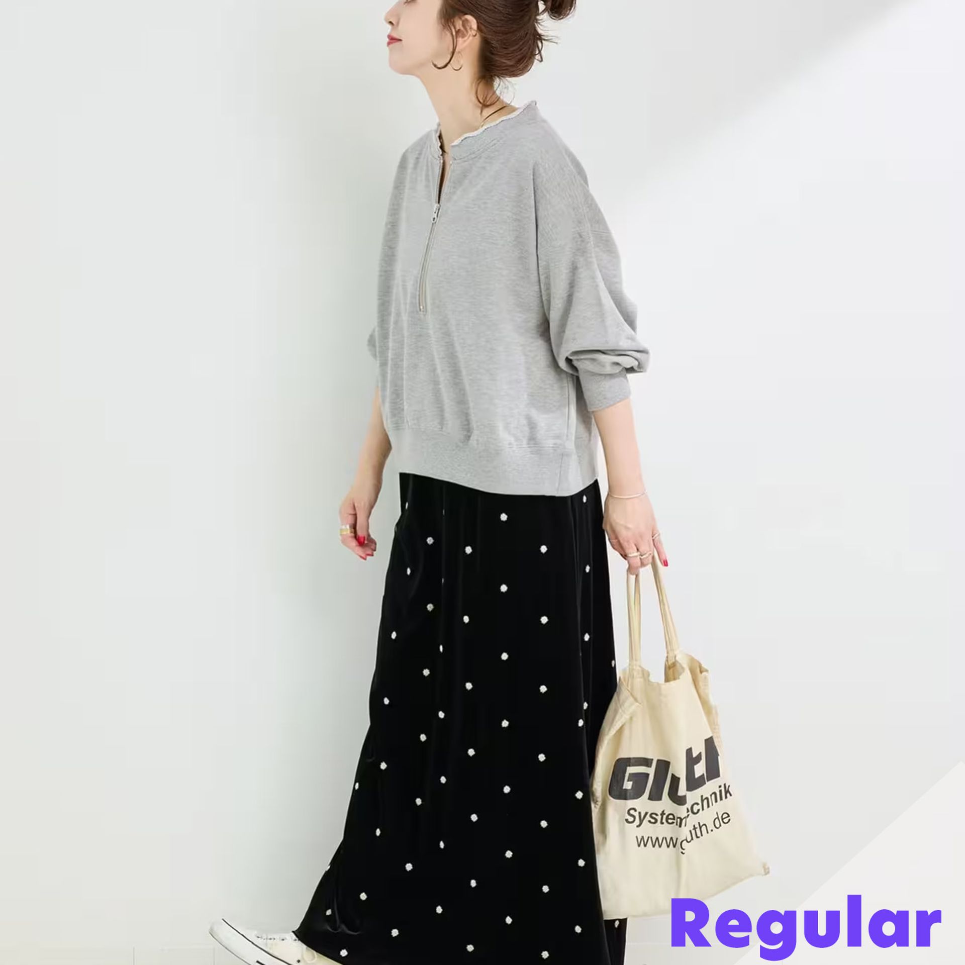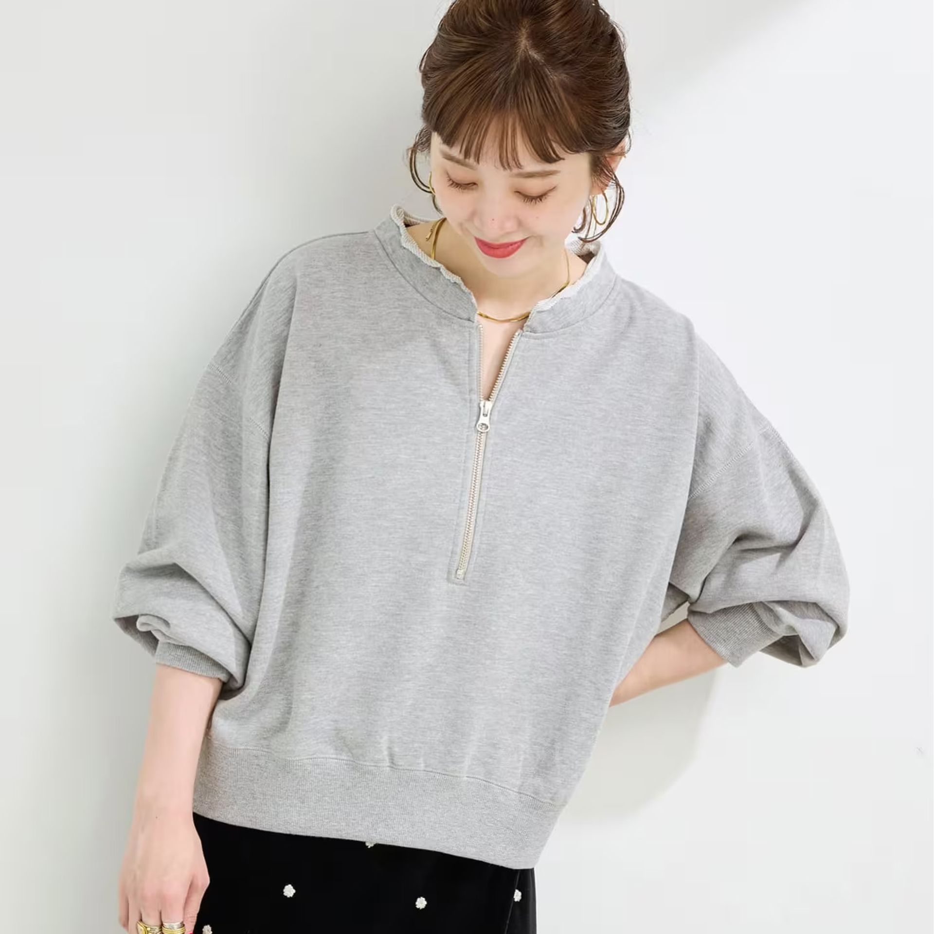 ゆったりと余裕のあるシルエットに、ハーフジップや襟回りの断ち切り仕様がコーデを引き立ててくれます。