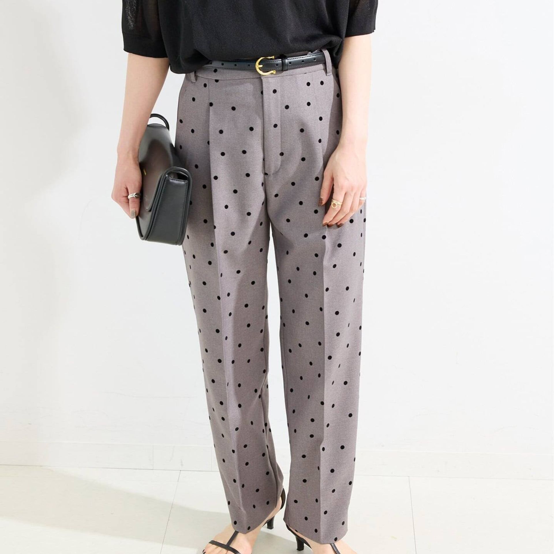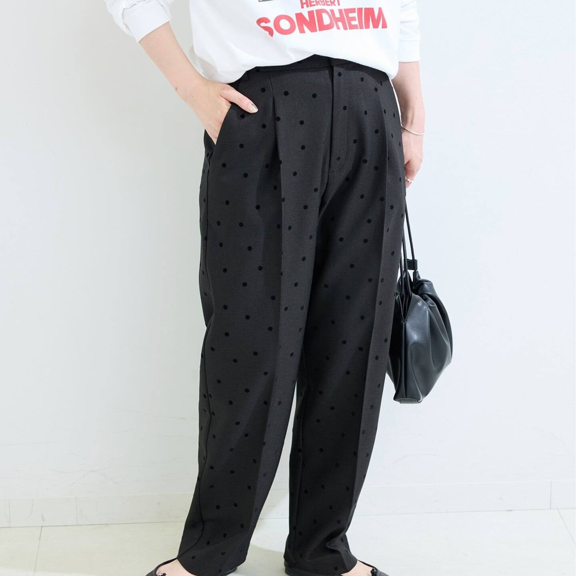 トレンド柄が目を惹くドット柄フロッキーのスティックパンツ。