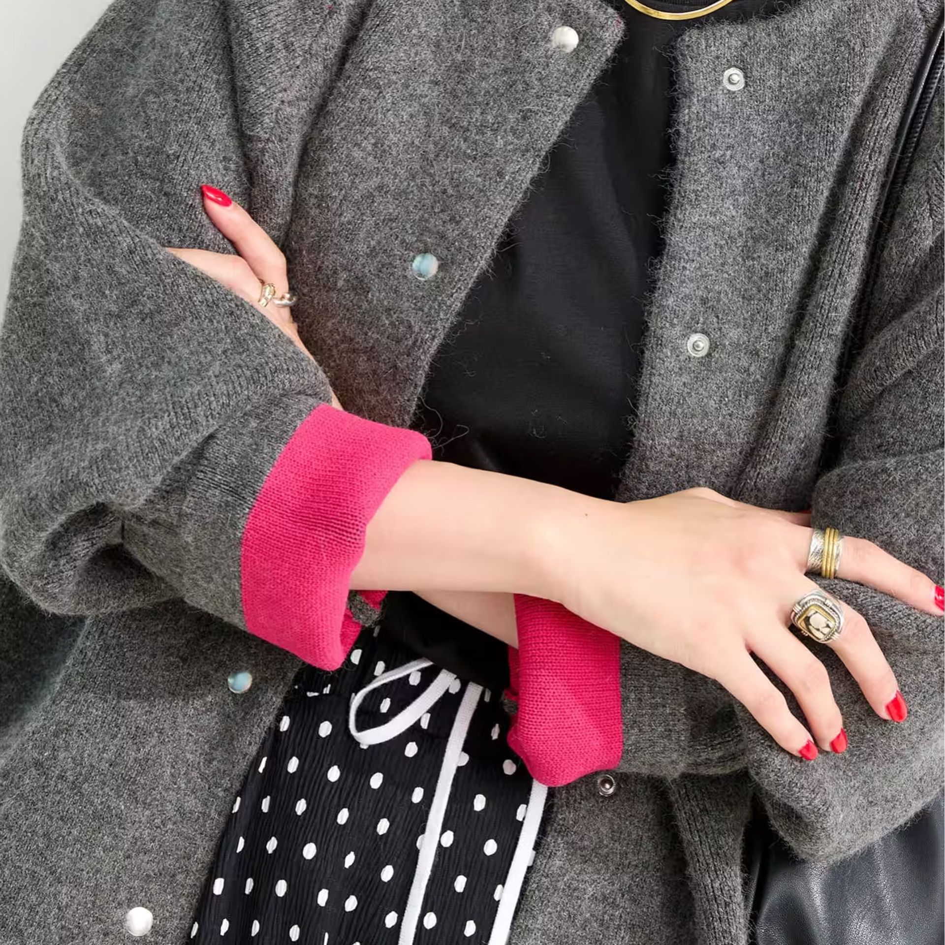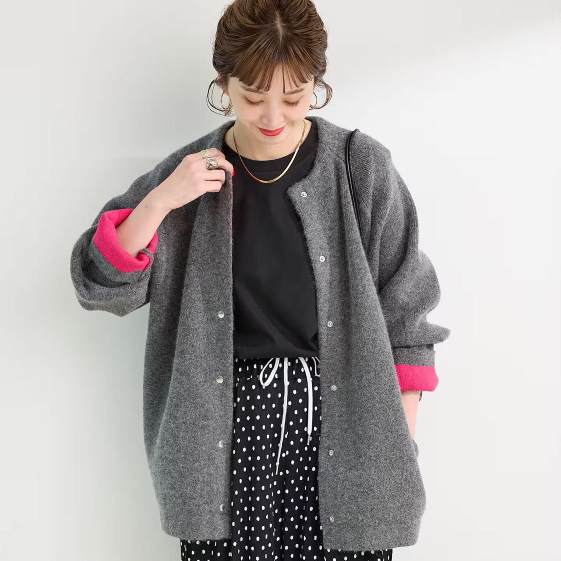 秋冬シーズンに一枚あると万能に使えるグレーカラーの羽織りアイテム。