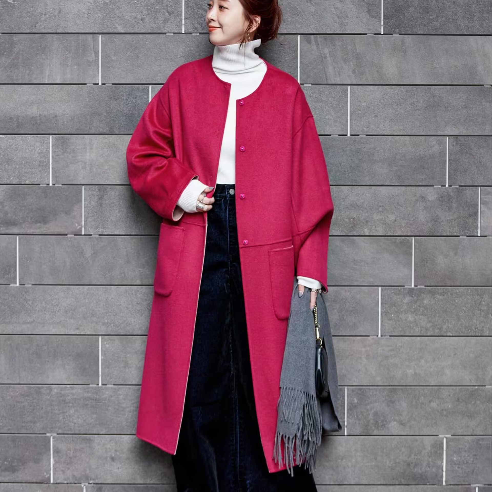 ガラッと印象を変えて着られる配色がポイント。両面使いでき、気分によってお好きな面でおしゃれを楽しめるコートです。