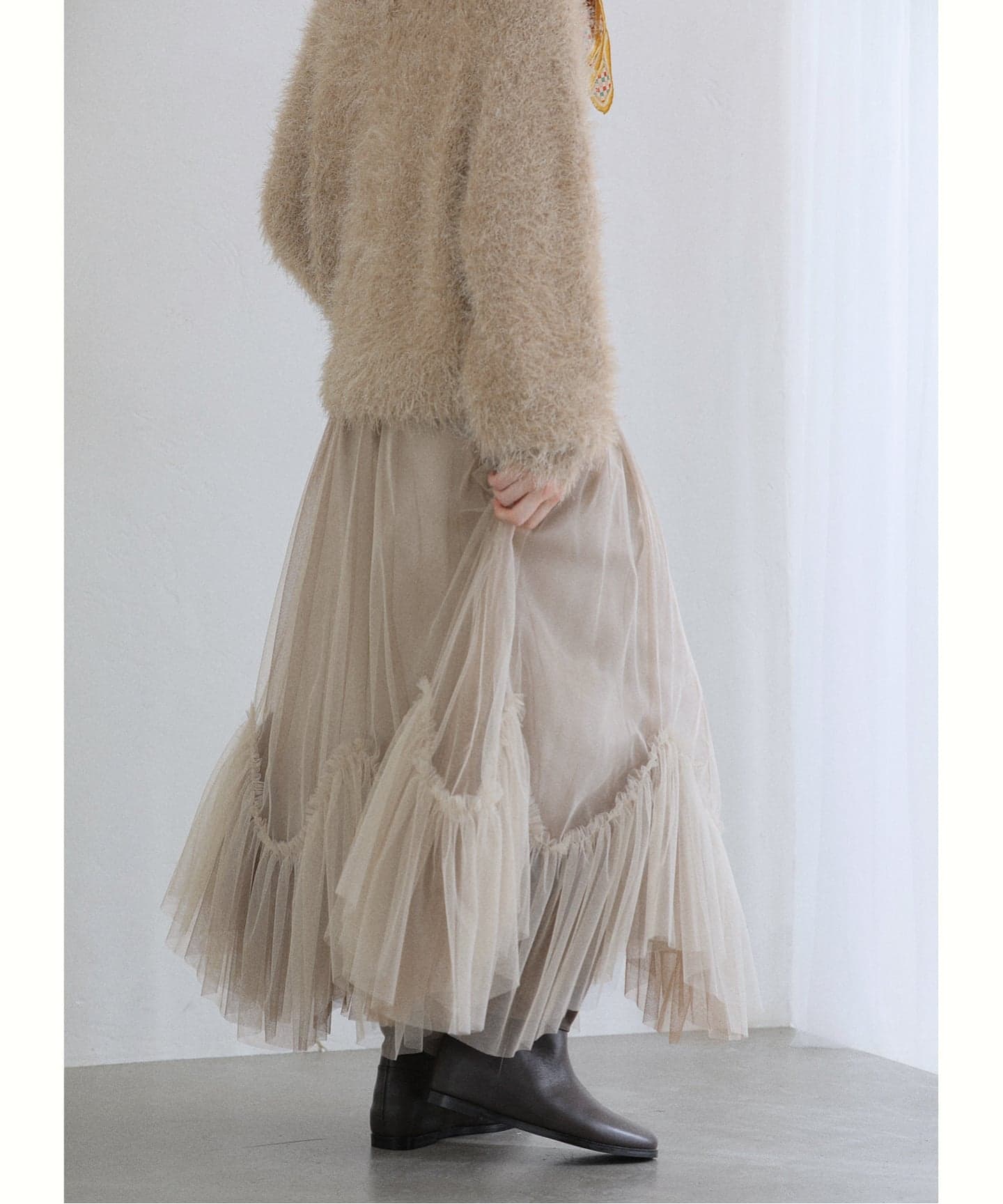 ふわふわとしたフェザー素材が目を惹く、大人フェミニンな2WAYニット。