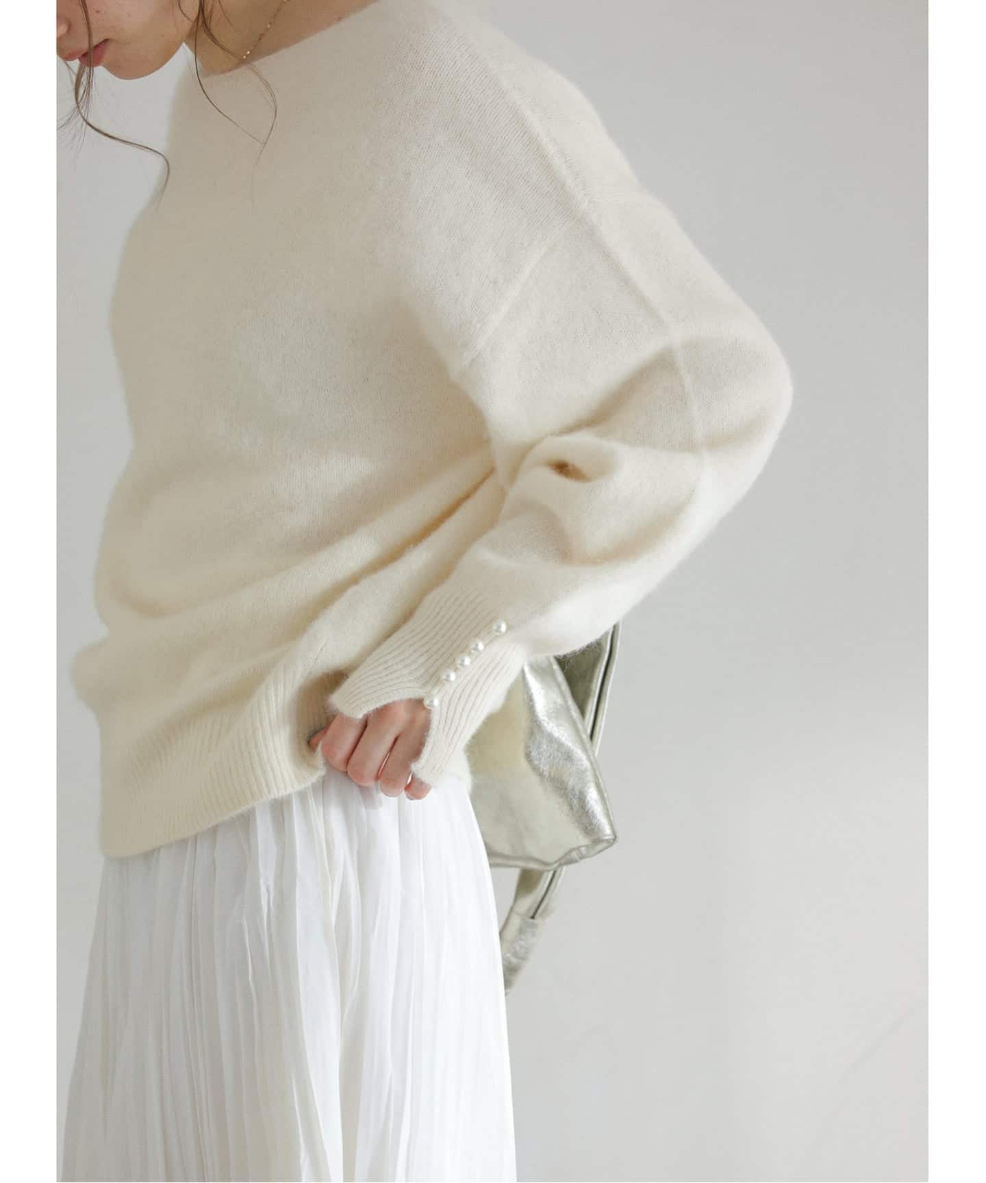 リッチな風合いのフォックスニットプルオーバーは袖にボタンデザインが入りさりげないアクセントに。