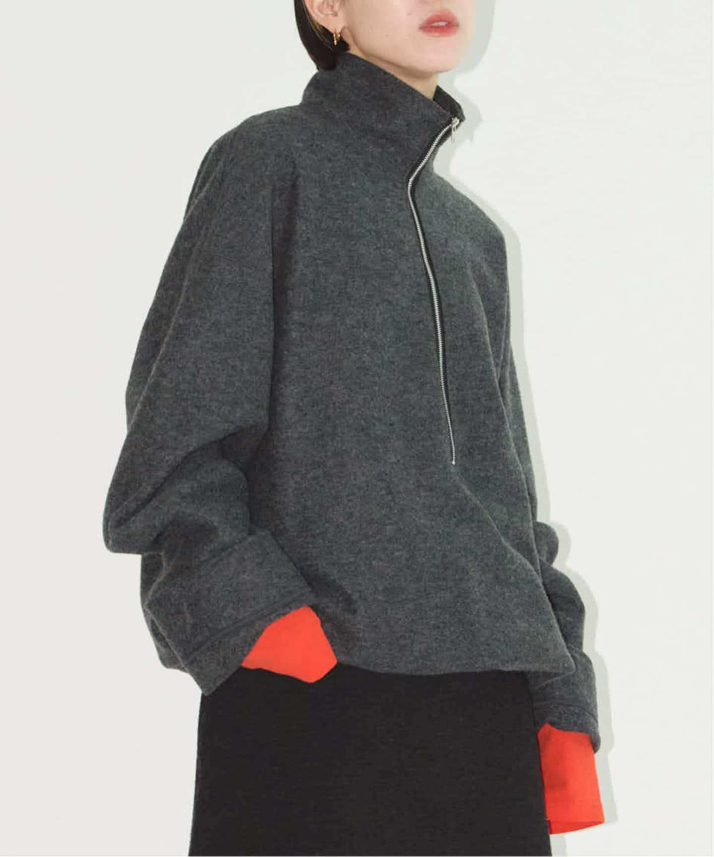 FELTED WOOL HARF ZIP TOP