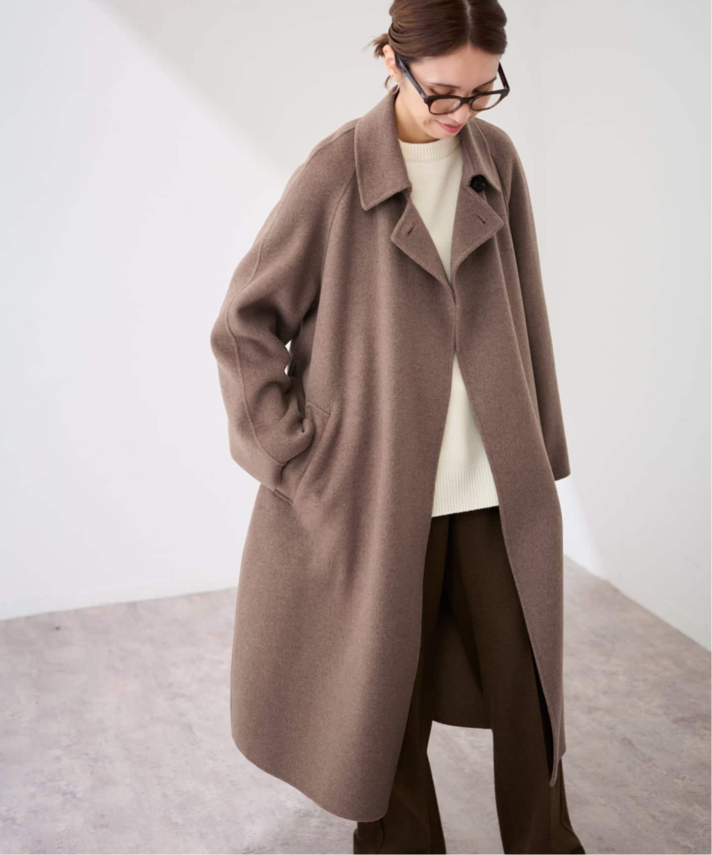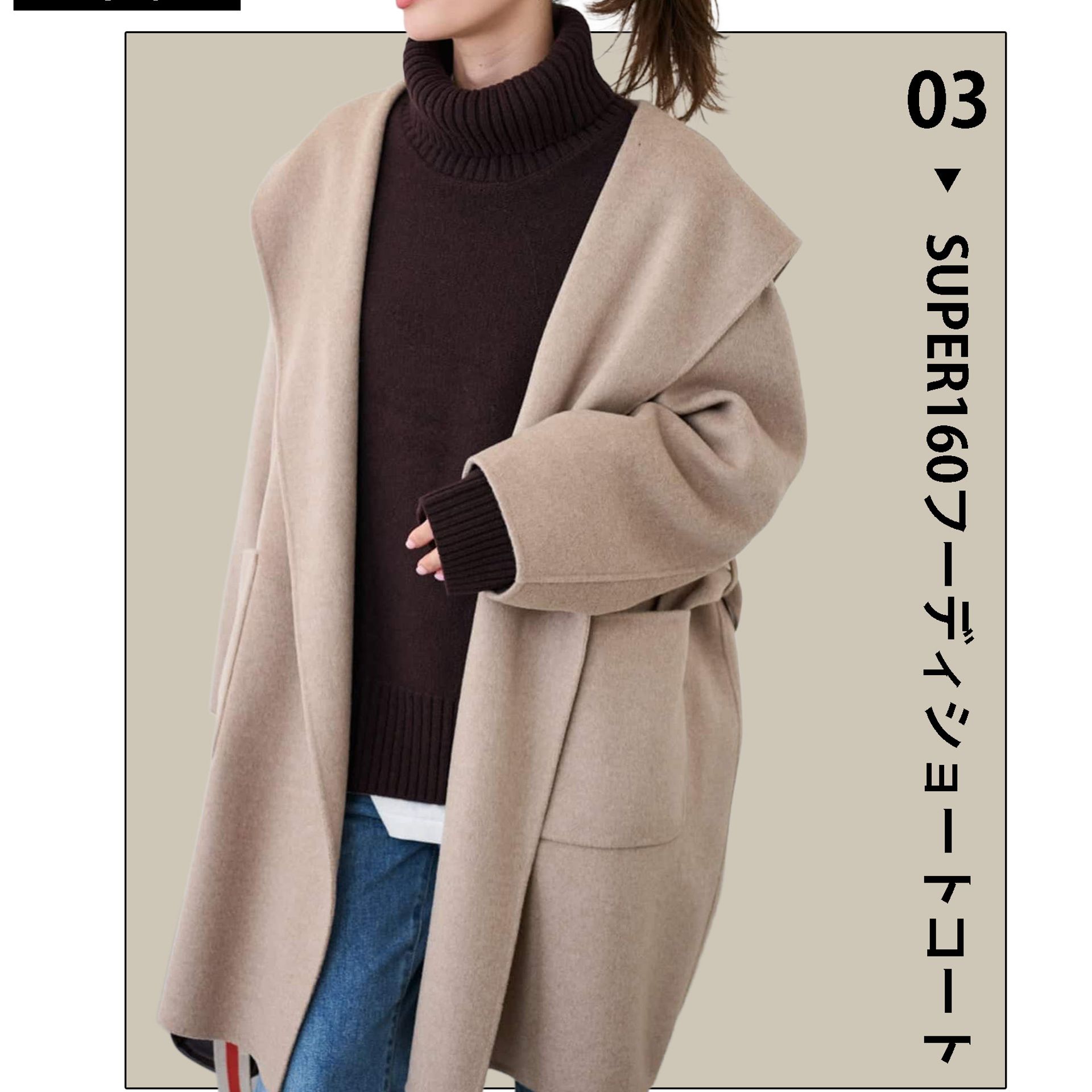 丸みのあるコクーンシルエットが女性らしさを引き立てる一枚。