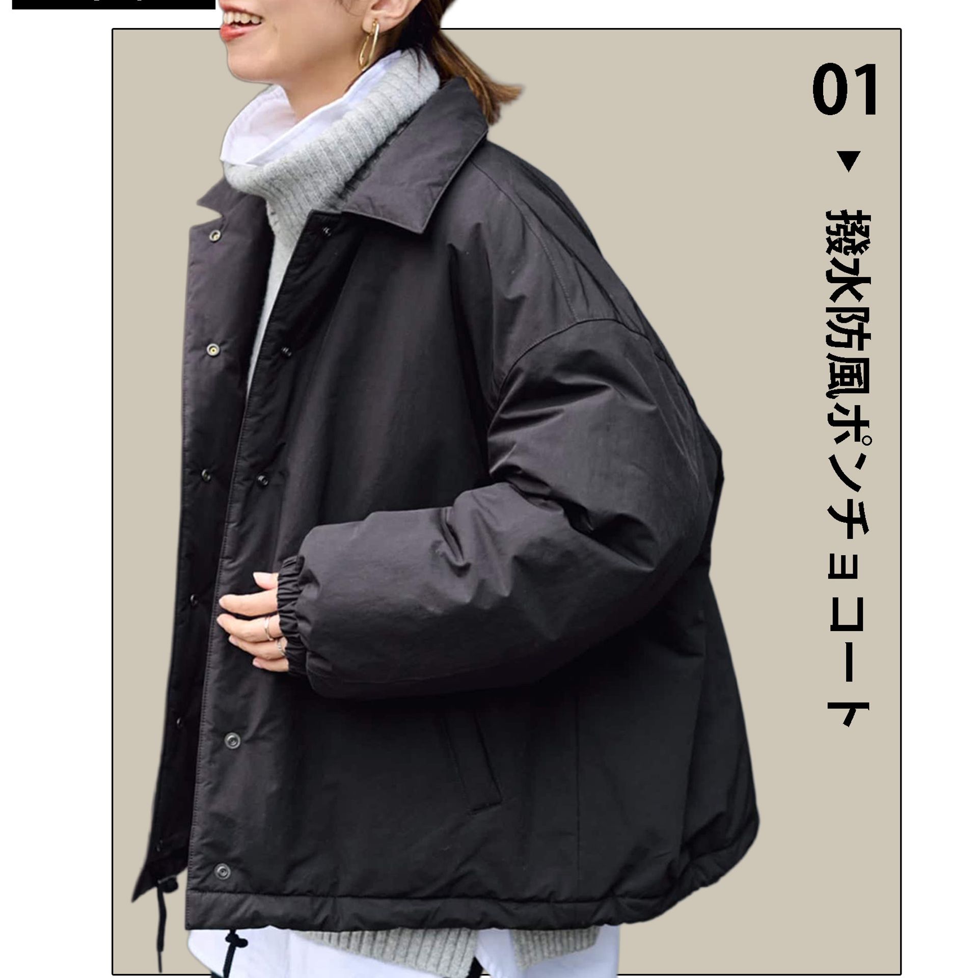 急な悪天候にも対応する機能性と、ポンチョならではのゆるっとしたシルエット。
