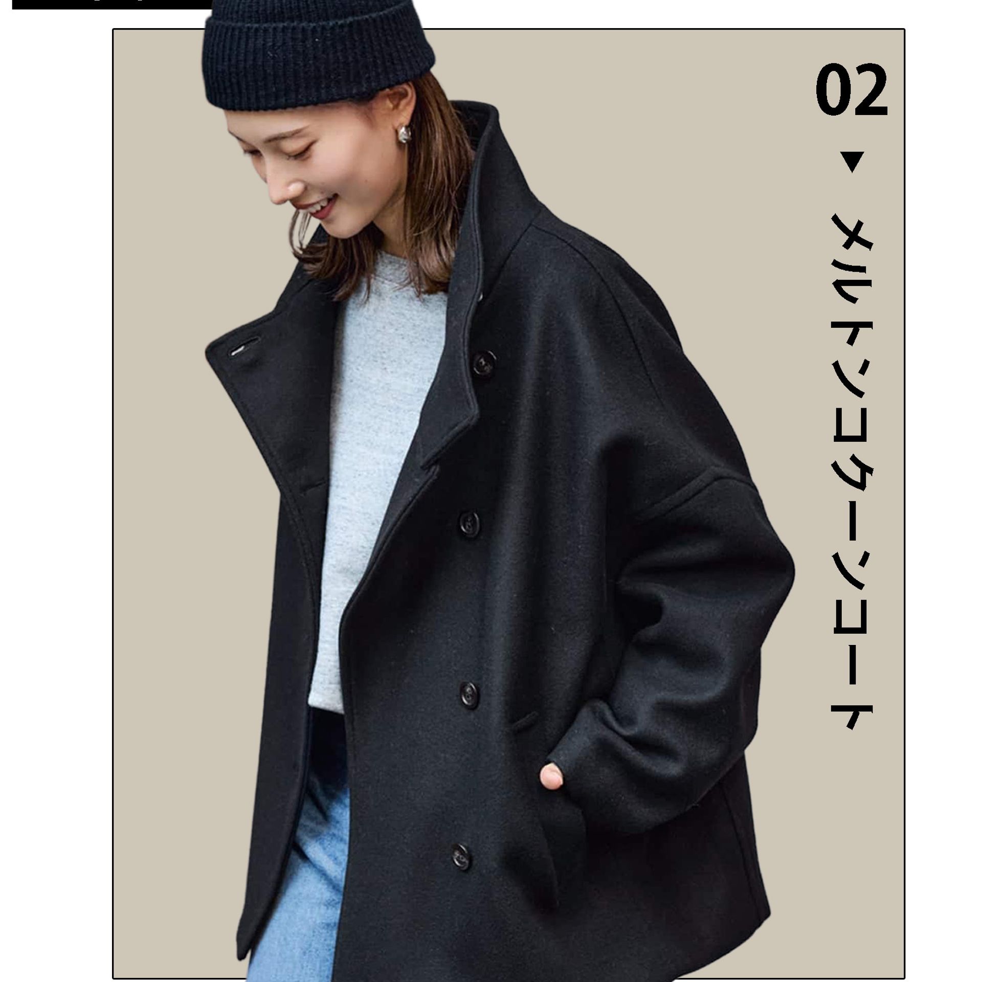メルトン素材のしっかりとした風合いで、きちんと感もあるのでオンオフ兼用に◎