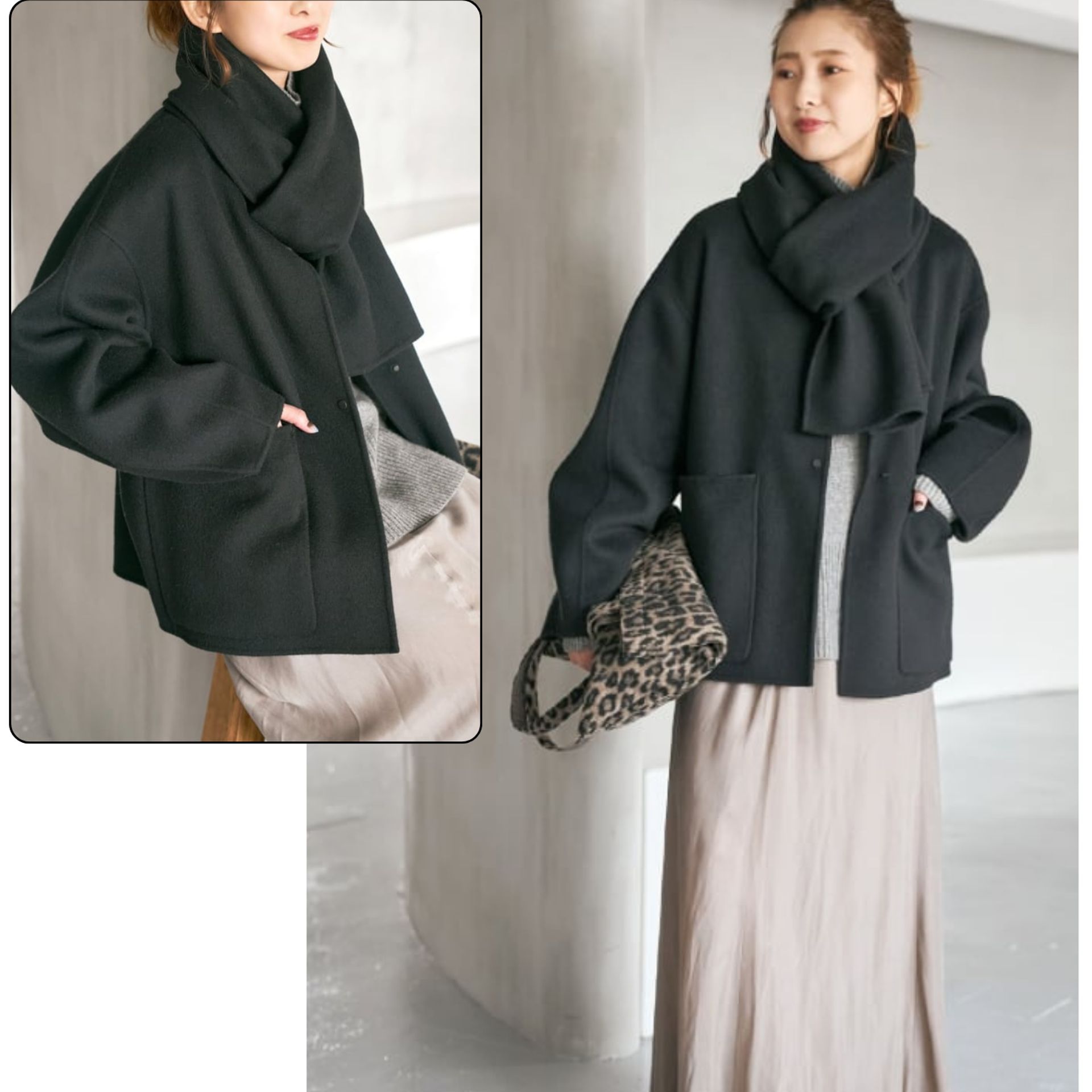 ストールとのセット使いで見映えが叶う便利なアウター。