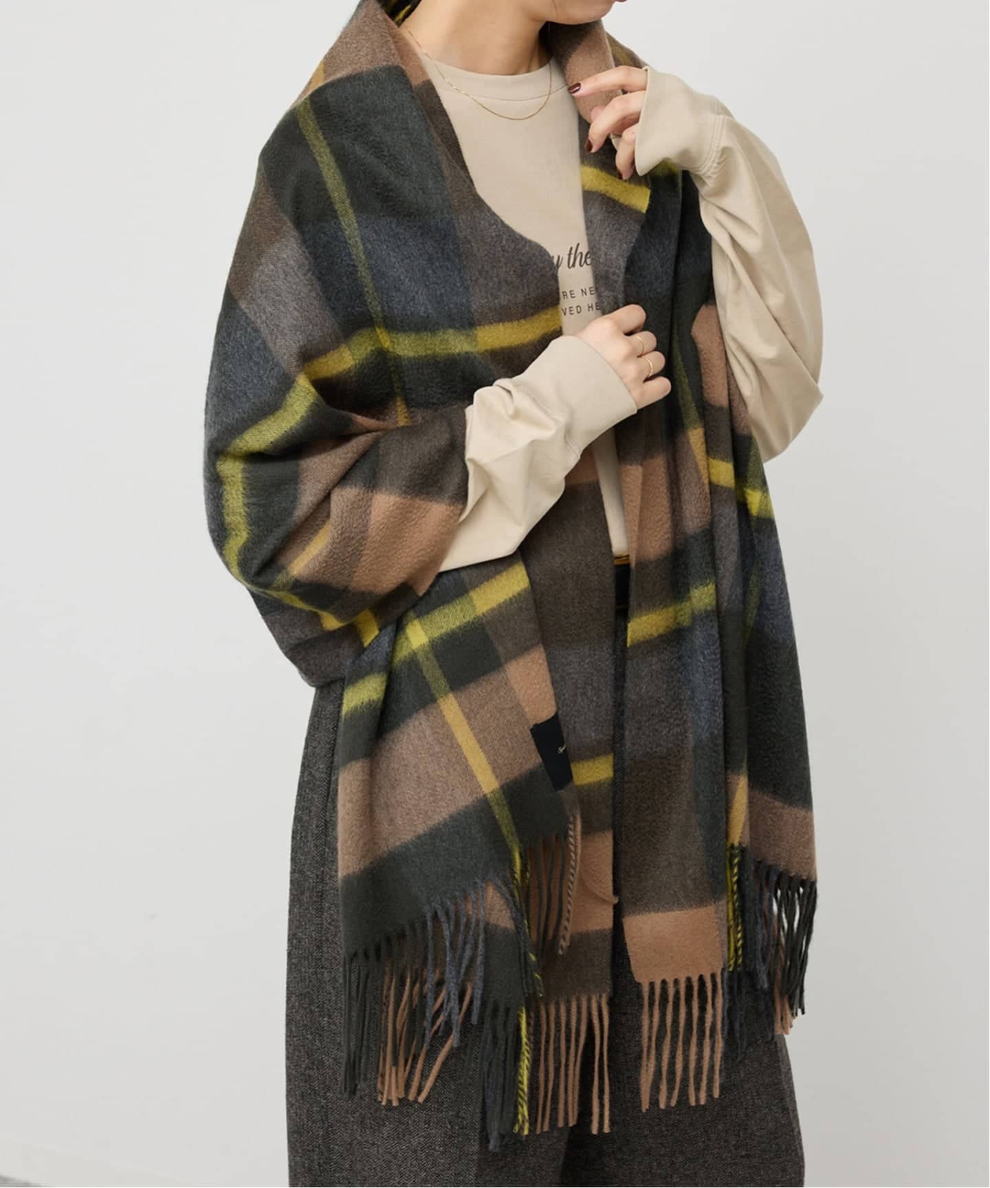 上質カシミヤの柔らかさで首元をやさしく包み、寒い日も快適に。
