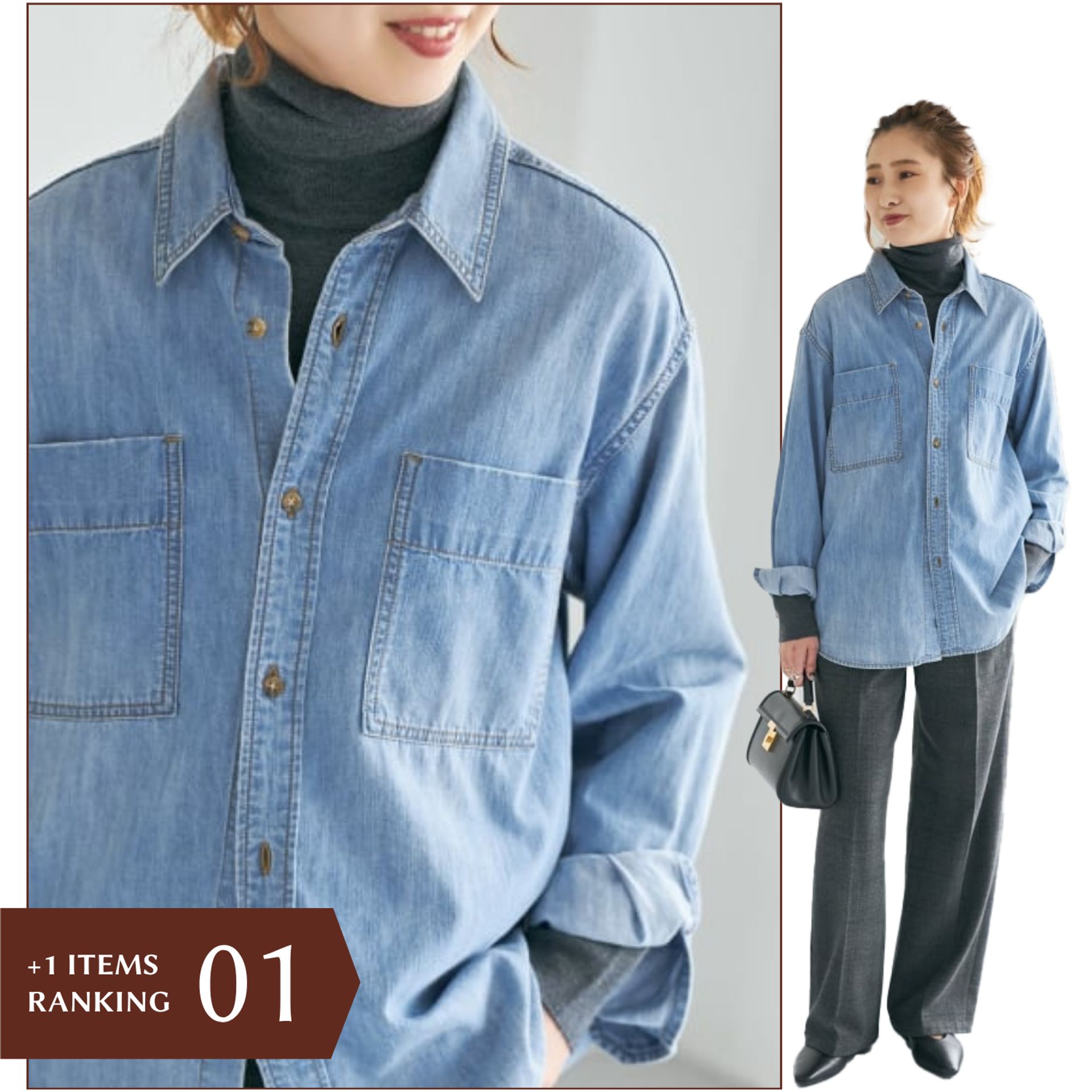 タートルやシャツをレイヤードするだけで保温力がアップし、軽やかさを残したまま冬の着こなしが完成します。