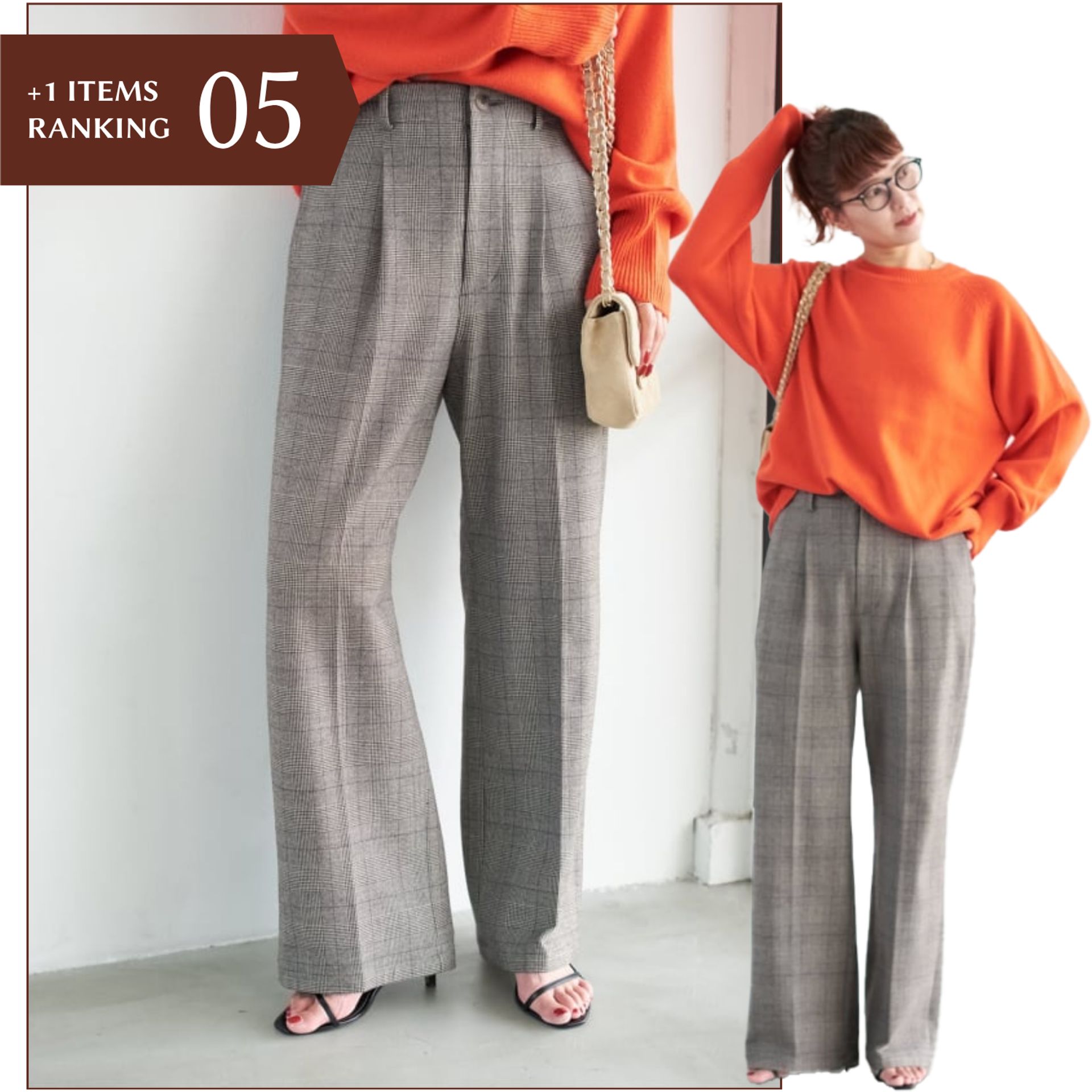 05│グレンチェック起毛タックスストレートパンツ