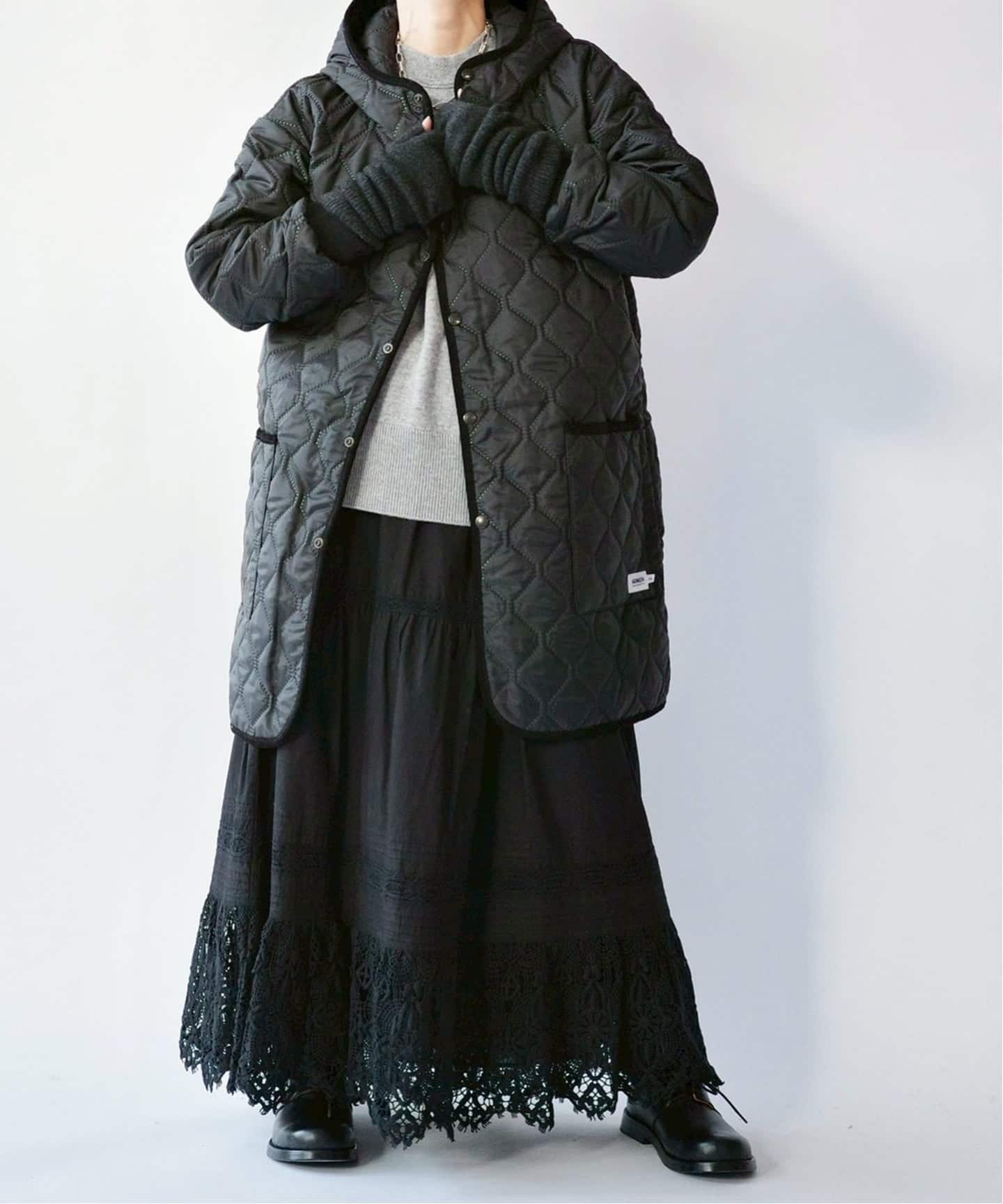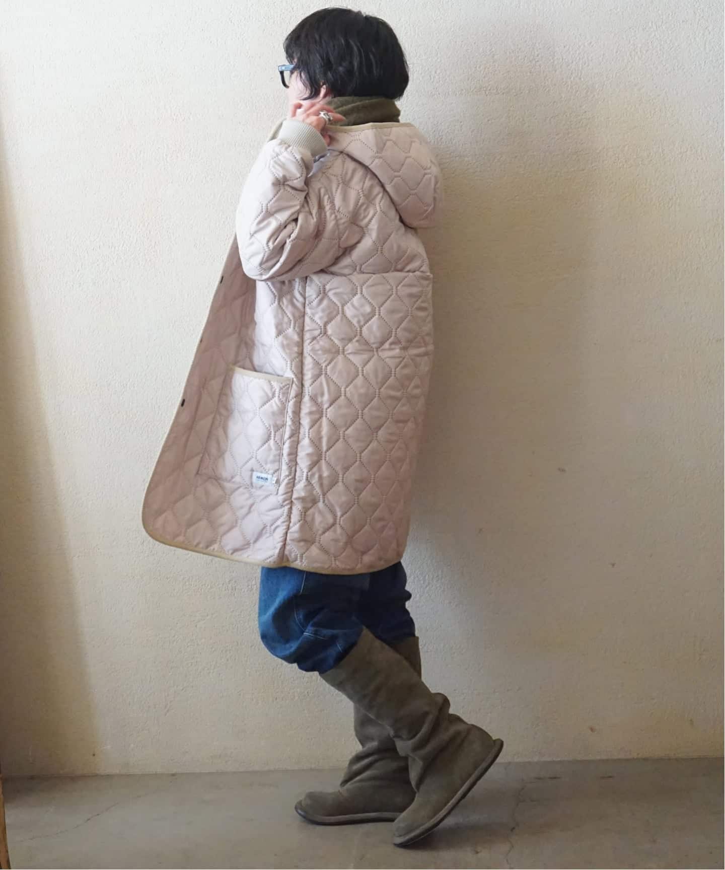 昨年のモデルより身幅を出し、着丈をやや短くアップデートしたフードコート。中にニットなどを着込みやすく、着丈が短い分、スカートやワイドパンツとも合わせやすくなりました。