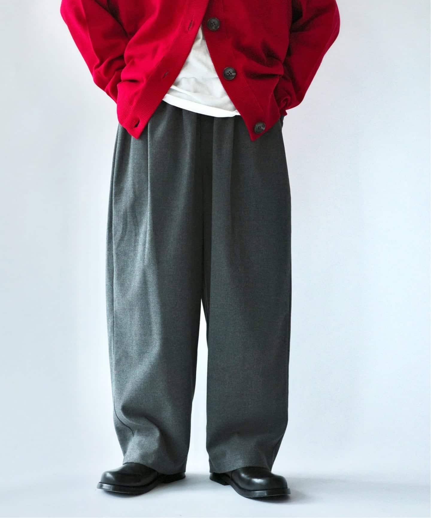ウールのような質感のTRストレッチツイル素材を使用した、ゆったりサイズのイージーパンツ。ウエストはゴム&内紐付きで快適な穿き心地です。後ろの大きめなパッチポケットでカジュアルに仕上げました。