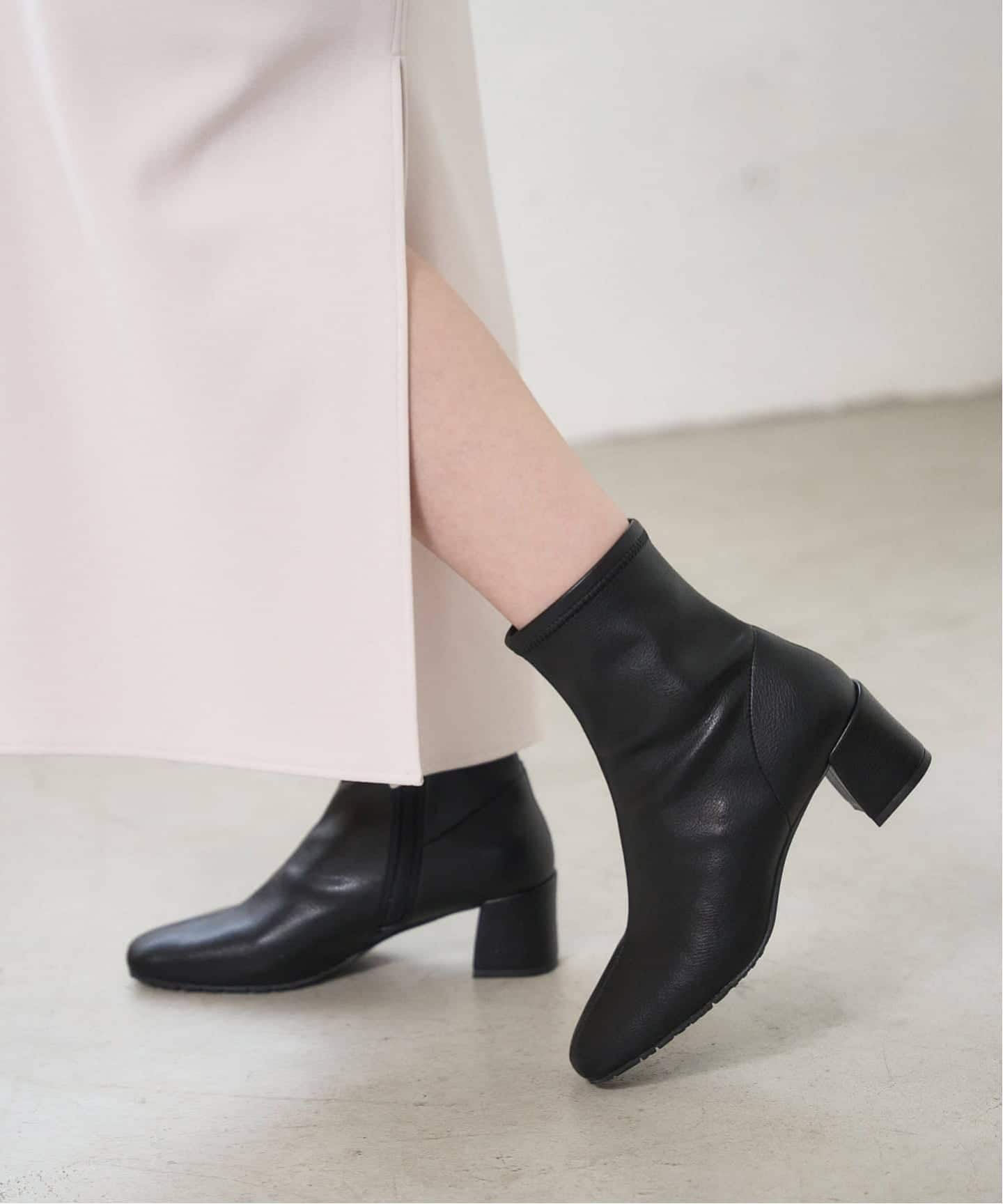 他のフィットブーツと比べてやや筒丈が長めなので、スリットスカートとも合わせやすく、高身長さんもバランスよく履いていただけます♩