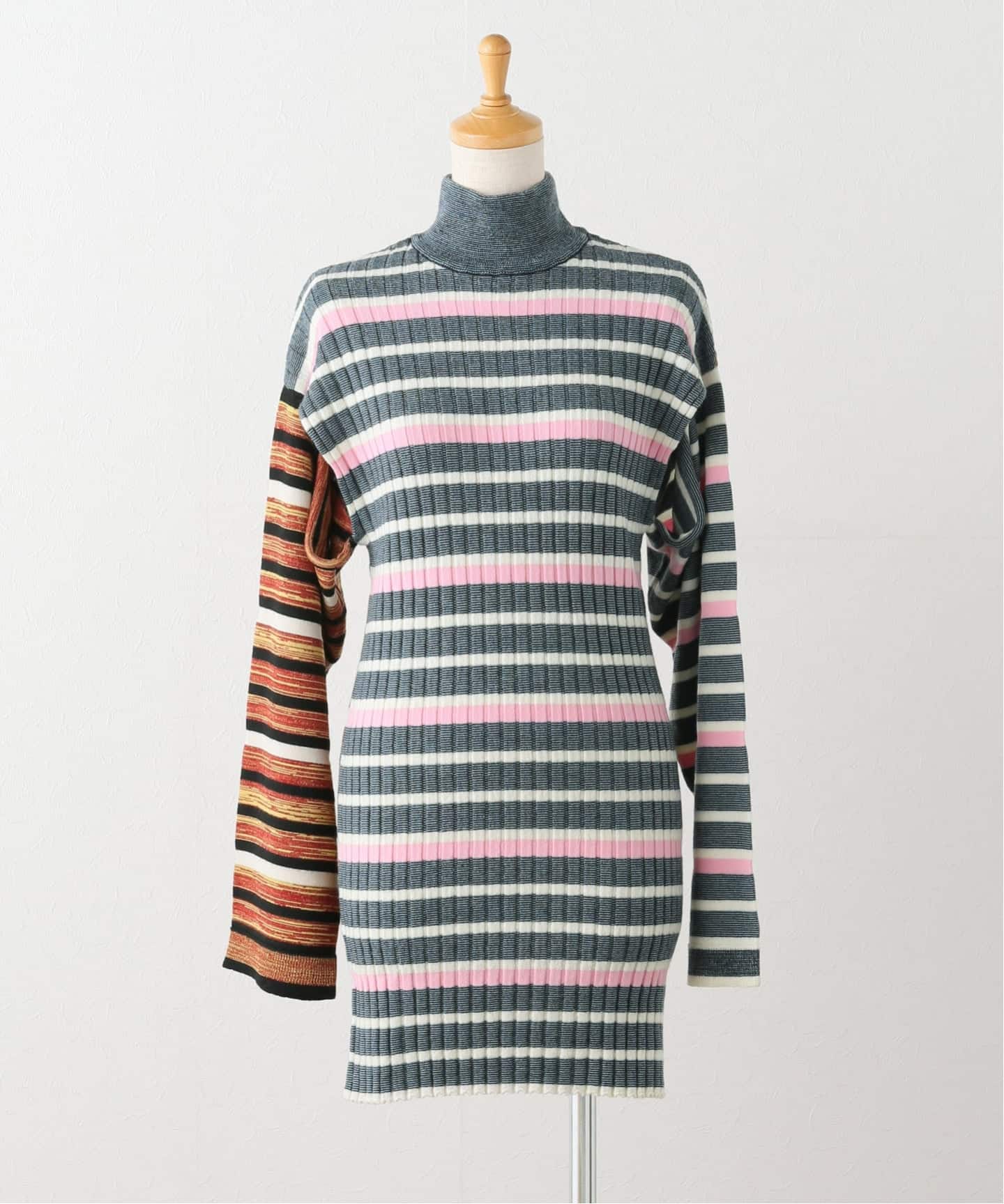 アイコンの一つでもある、袖もとにスリットが入って、自由自在に形を変えて楽しめるスリットニットをベースに、トップスとしても着用できるドレスが完成しました!